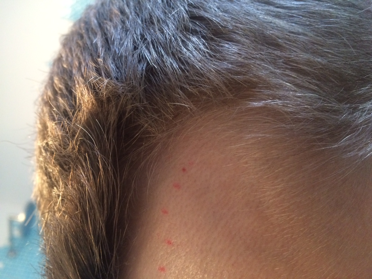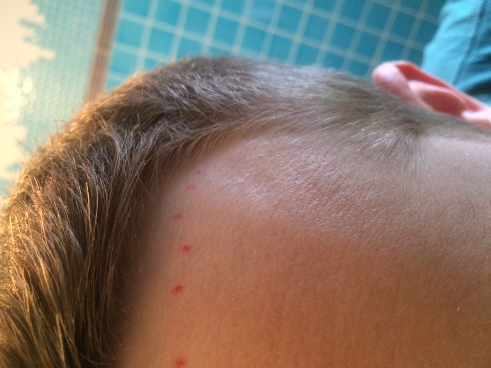 Lasst euch nicht irritieren von den anderen roten Punkten, die dienen in dem Bild nur zur Bestimmung wohin meine Haarlinie ca in 2 Monaten gelegt wird