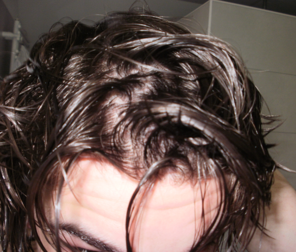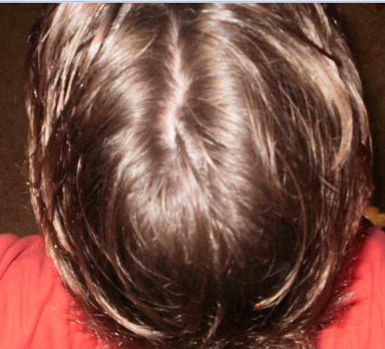 Meine Haare sind vor allem wenn ich sie mit früher vergleiche überhaupt nicht mehr gut. Ich habe noch keine kahle Stelle oder so, aber es ist halt wirklich so dass man bei entsprechendem Licht schon überall Kopfhaut durchschimmern sieht auch bei trockenen Haaren. Ich schicke nochmal ein paar Bilder mit. DIe sind noch vom Juli. In echt sieht es wirklich viel schlimmer aus aber man kann es auch gut erkennen. Ich kann natürlich auch in richtigem Licht und richtiger Perspektive Bilder machen wo man es nicht sieht. Aber das bringt ja nichts.