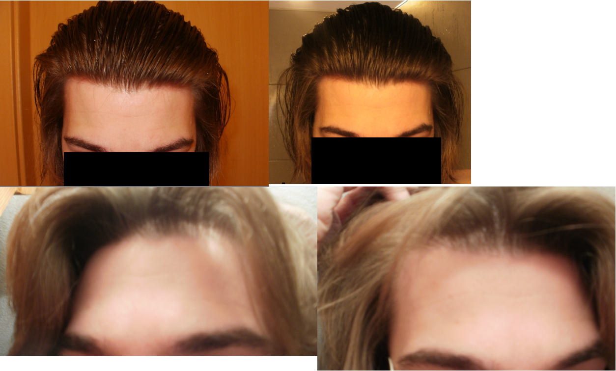 Die Bilder liegen echt nur 2 Wochen auseinander, die unteren sind von gestern und die oberen vom 20.02. ich denke nicht dass es sich in der Zeit so extrem verschlechtert hat. Das ist jetzt bloß der Kontrast aber das hab ich extra versucht so zu machen. Also beim oberen alles nach hinten zu kämmen + gnädiges Licht, und bei dem unteren vorne die Haare nach hinten zu ziehen + helleres Licht, aber es sieht in real tendenziell eher so aus wie auf den unteren Fotos.