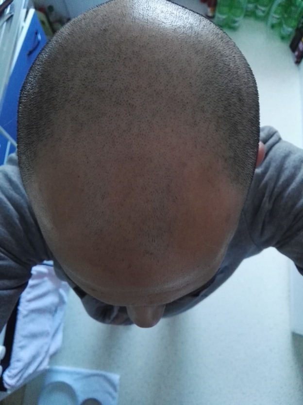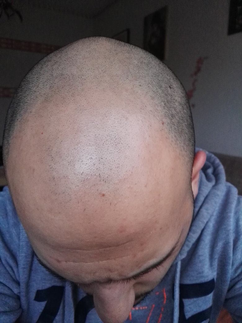 Tag 90. Glatze Wie man erkennt, kaum "Haarstoppeln in den GHE"