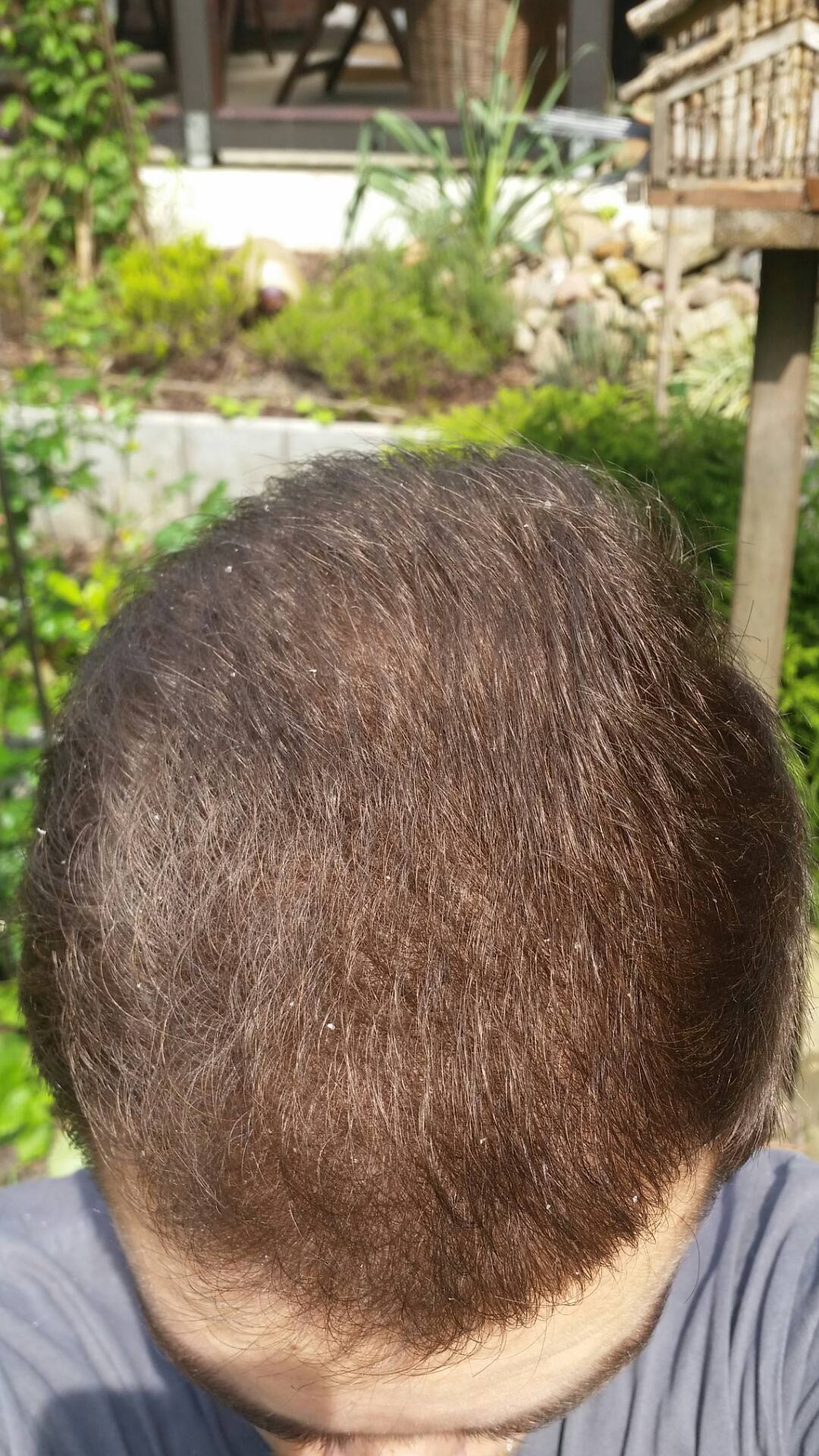 Habe jetzt hier mal 1 Bild aus Dezember 2015 vom Oberkopf. Im nächsten Bild sind 2 Bilder von gestern zu sehen. Die Haare auf dem Dezember-Bild sind leider etwas länger.