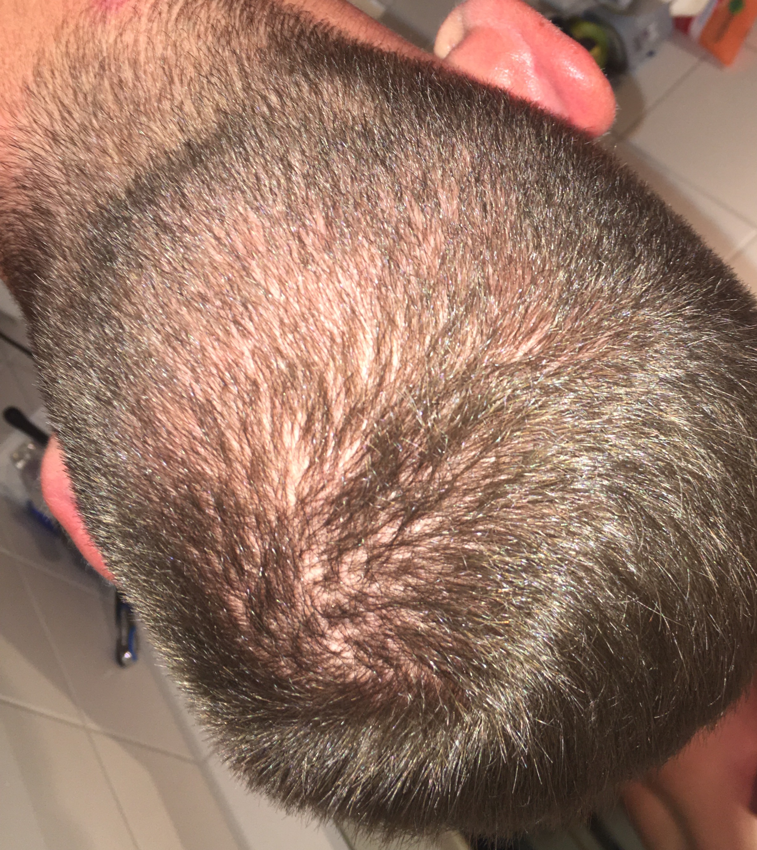 Ob es ein Wirbel oder ein schleichender Ansatz von AGA ist finde ich in dem Licht schwierig zu sagen.