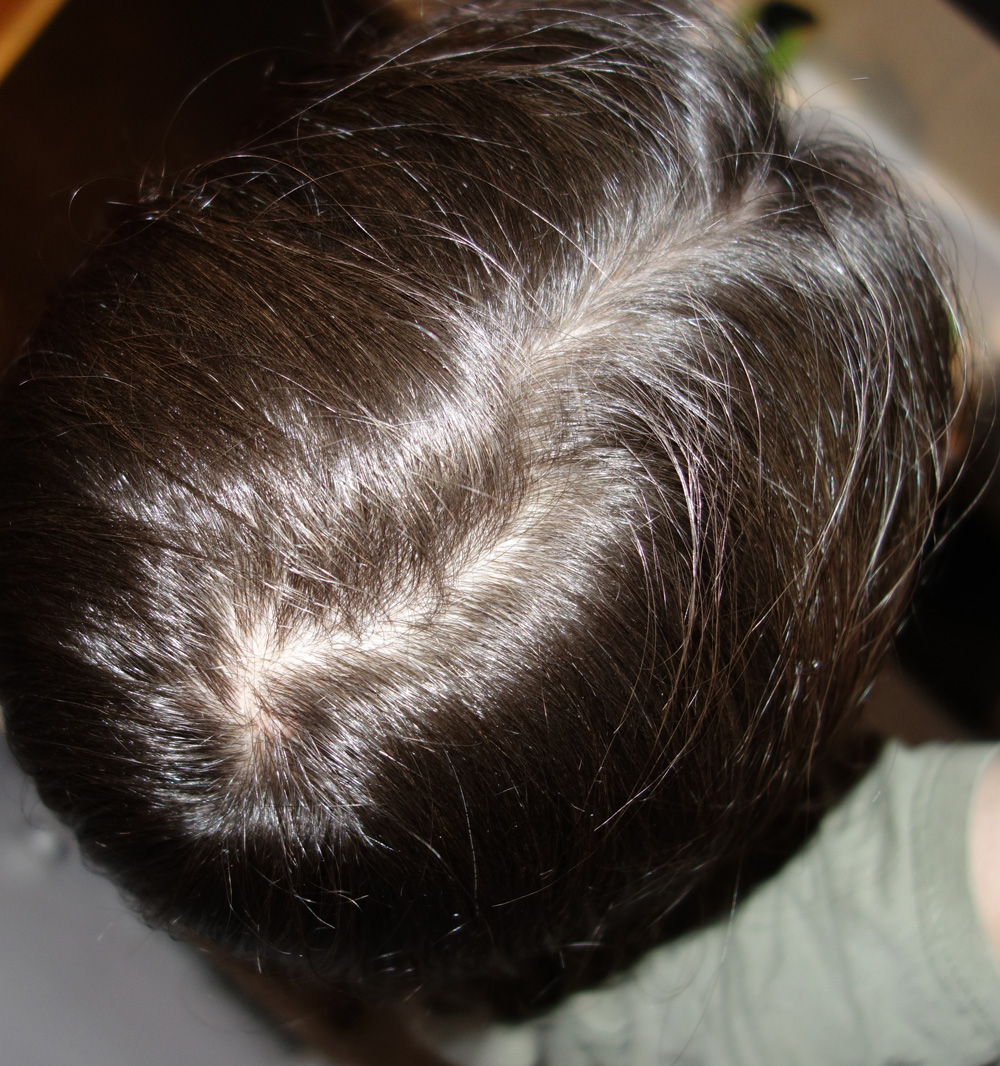 Dein Bild von vorne ist unvorteilhaft. Die GHE wird von Haaren überdeckt. So kann man garnichts beurteilten. Ansonsten sieht das für einen fast 40 Jährigen super aus.