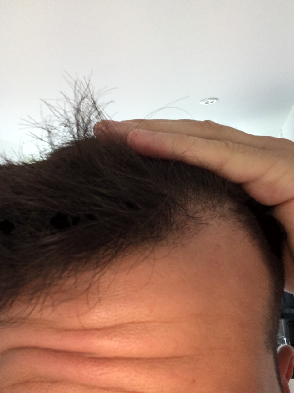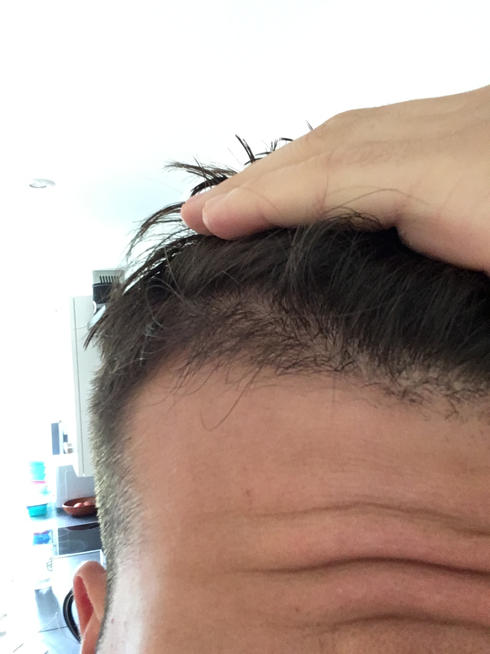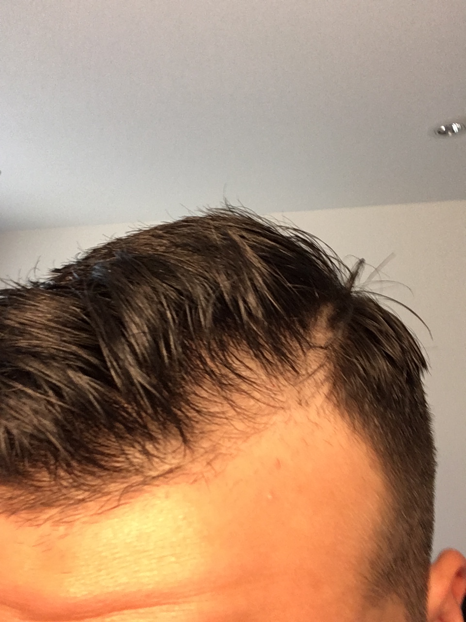Hmm ich denke da ist schon etwas, habe jetzt nochmals Bilder gemacht mit Beleuchtung und teilw. auch nassen Haaren damit man die Stellen besser sieht...