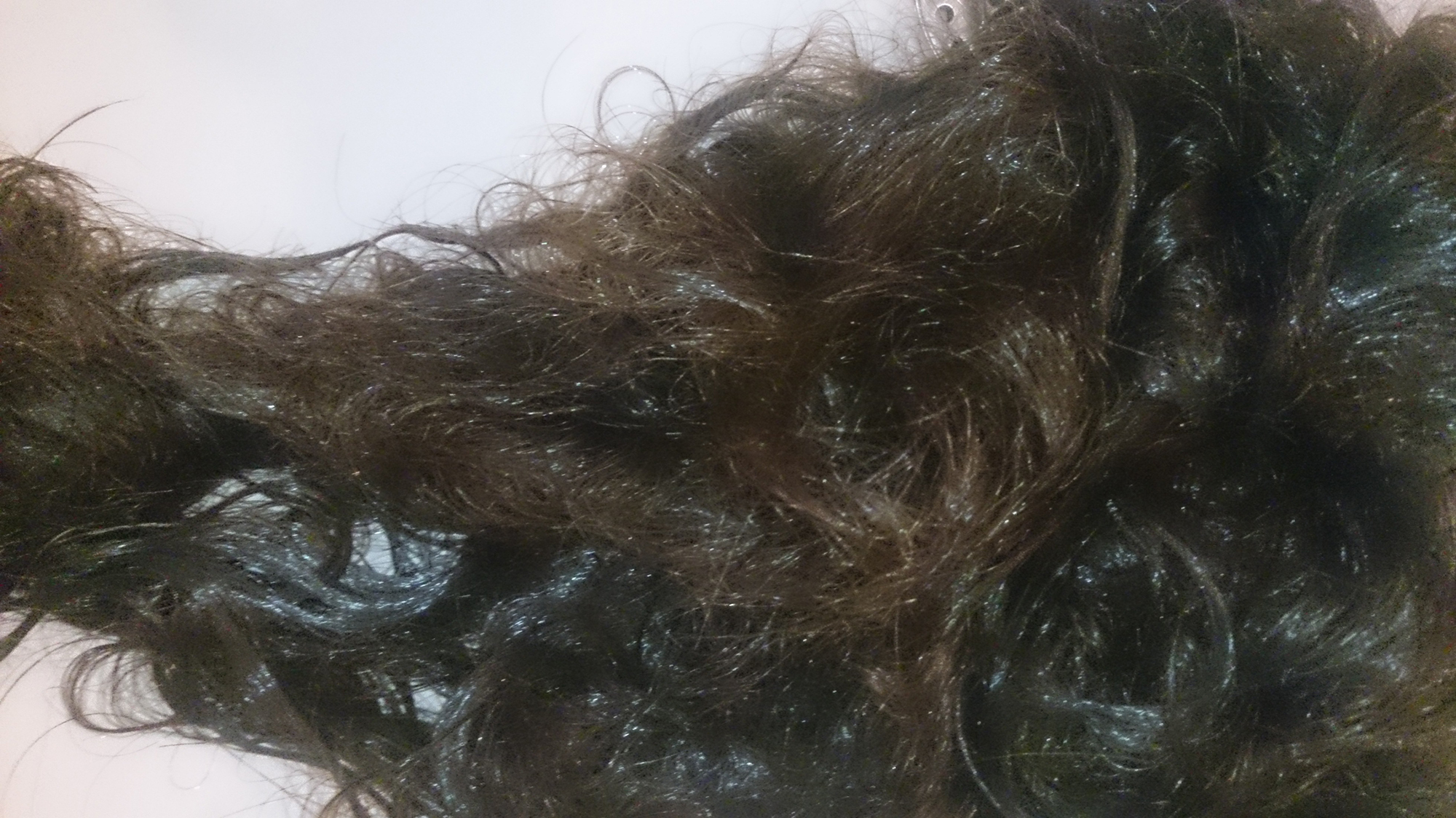 Heute und gestern insgesamt wieder 3 Std. dran gehockt und alle Verknotungen entfernt. Haarteil übers Waschbecken und mit Shampoo gewaschen. Da merke ich doch direkt, wie sich das Teil wieder verknotet. Beim Waschen wurde das Haarteil direkt eine feste Platte aus Haaren.
