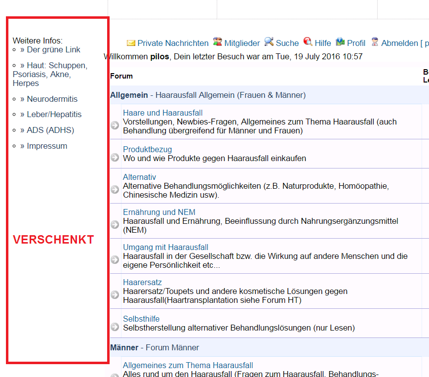 Zwar erscheinen die "letzen 15 Themen" unten wieder, wenn ich mich Anmelde.