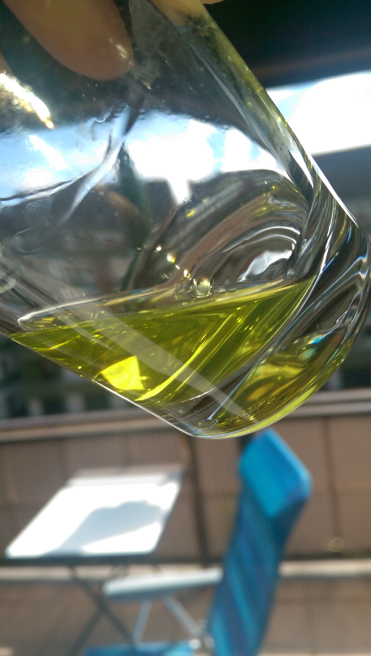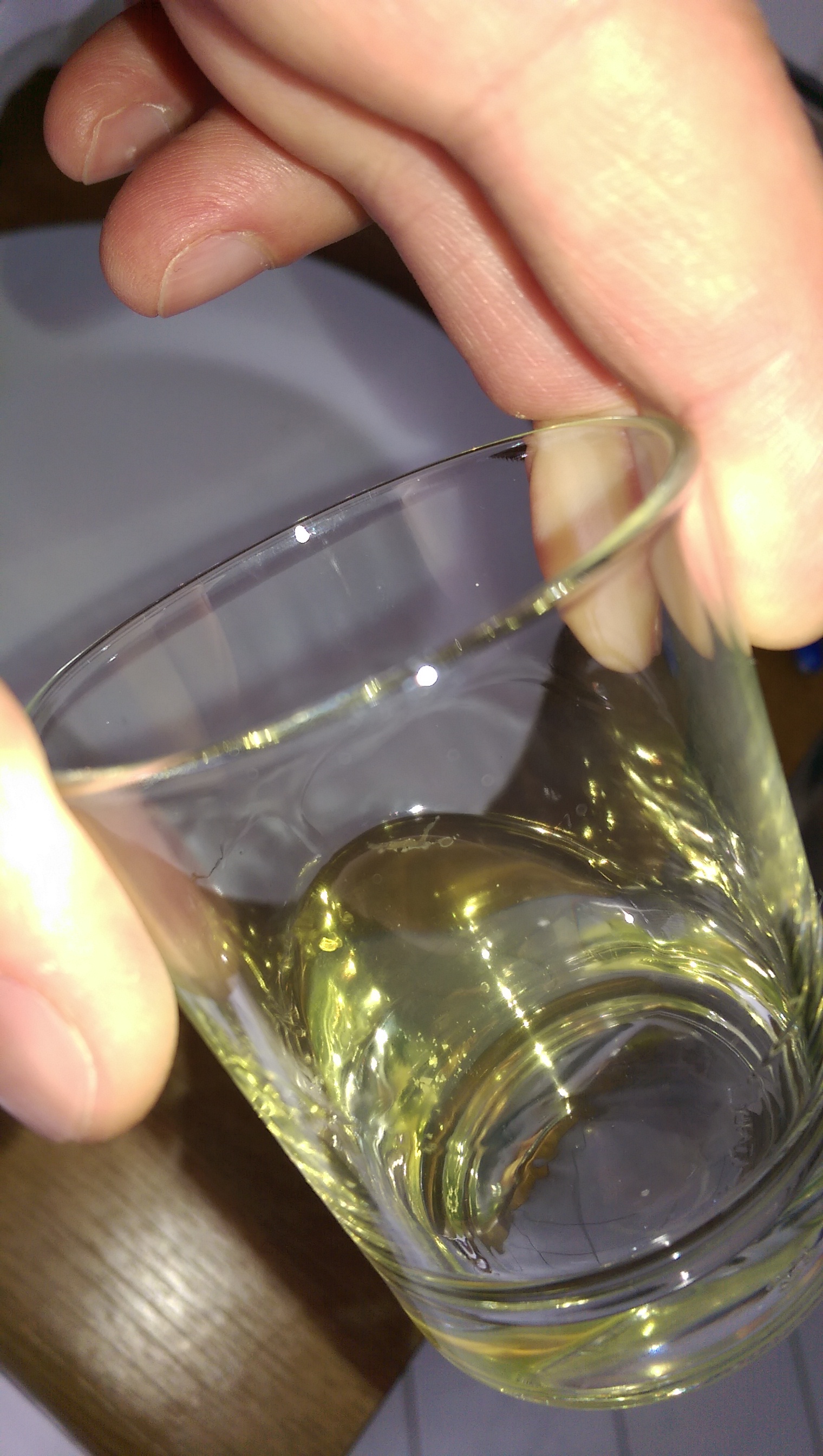 Zuvor nur mit Weingeist war die Mische zwar auch relativ klar, nur hat sich am Glas immer weisser Absatz gebildet, also vom ausgefallenen Seti.