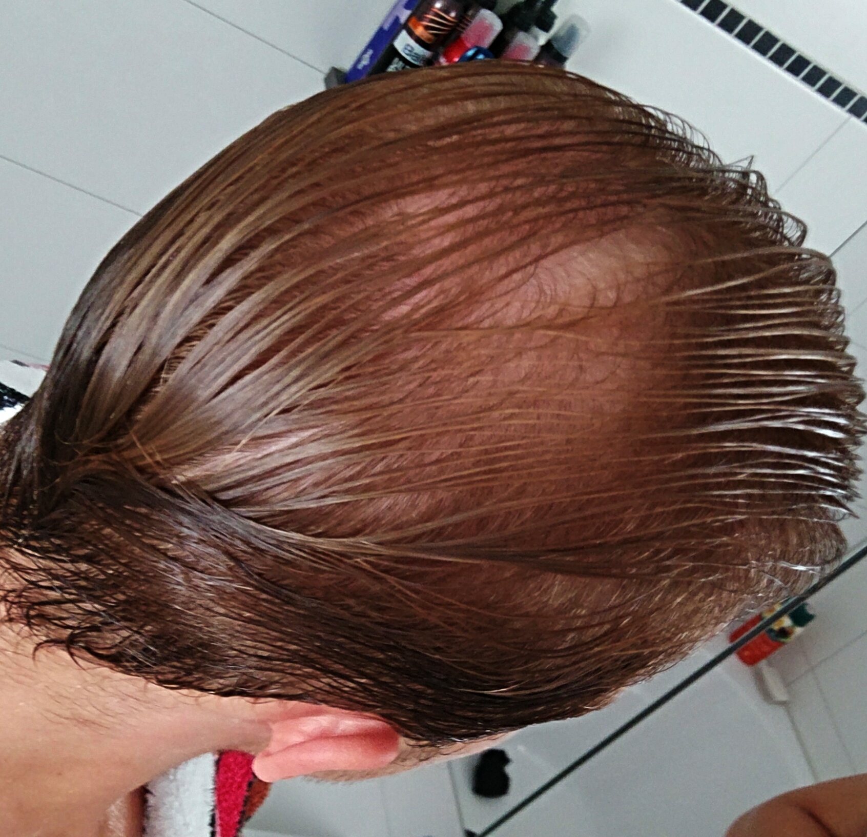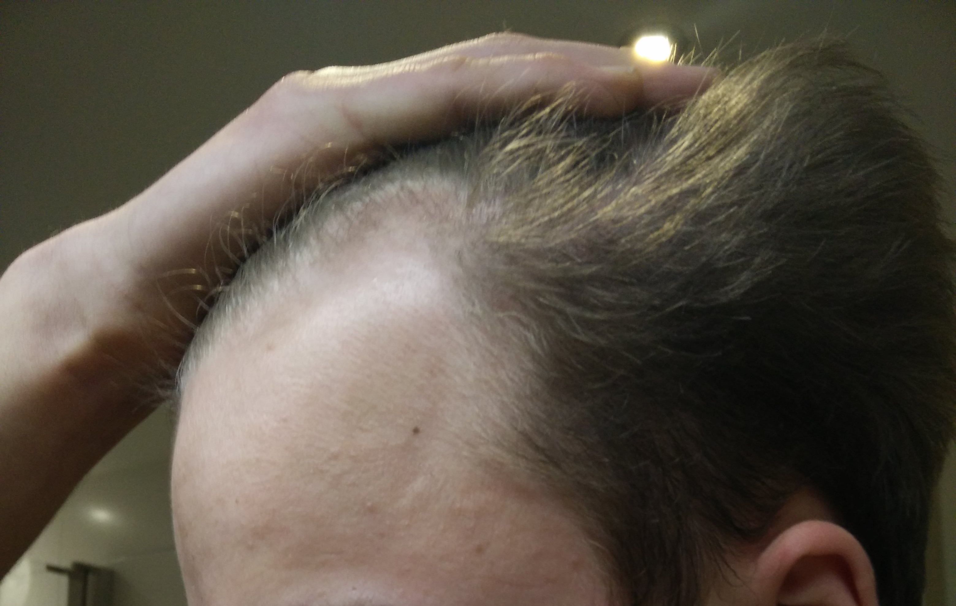 Vor rund 1,5 Jahren bin ich dann zum Dermatologen und der bestätigte, dass es sich um anlagebedingten Haarausfall handelt. Mein Vater hat mit Mitte 50 eine Halbglatze, wobei bei ihm der HA erst mit ~25 angefangen hat und dann auch eher langsam verlief. Seit dem Besuch beim Hautarzt nehme ich auf dessen Emüfehlung regelmäßig 5% Regaine. Nach ca. 8 Monaten Anwendung hatte ich den Zenit erreicht und war sehr zufrieden. Danach ging es aber wieder bergab und die GHE nehmen stark zu (von den damals neuen Terminalhaaren sind inzwischen nur noch einzelne Flaumhaare übrig), was ich verhindern oder zumindest verlangsamen möchte. Zusätzlich habe ich gerade das Gefühl, mein Haar dünnt allgemein aus, wie bei diffusem Haarausfall. Nun hätte ich gerne euren Rat: