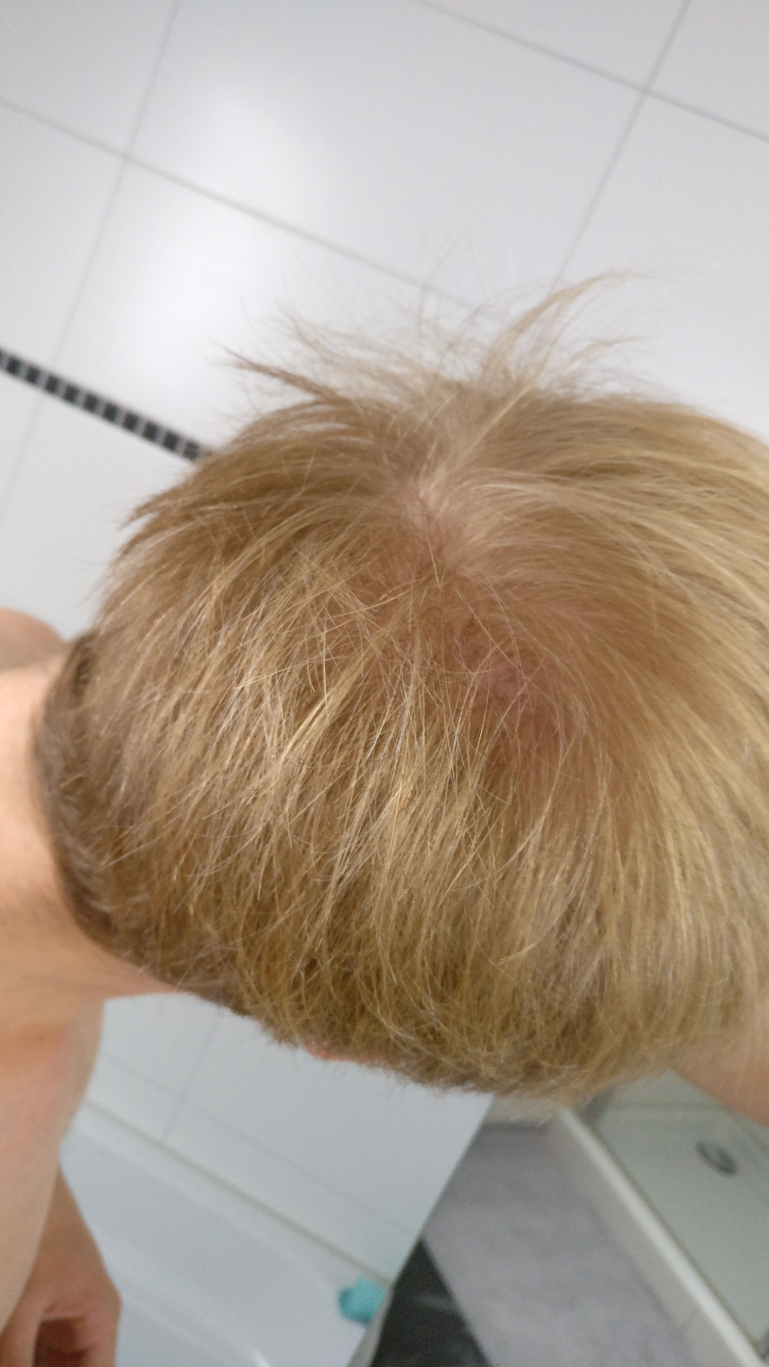 Update für mich selber zum Schluss des Jahres. Tonsur von selber wieder dichter geworden oder mindestens gleich geblieben. Geheimratsecken zwischenzeitlich mit Fin zugewachsen, nach Absetzen stärkeres Ausdünnen als je zuvor.
