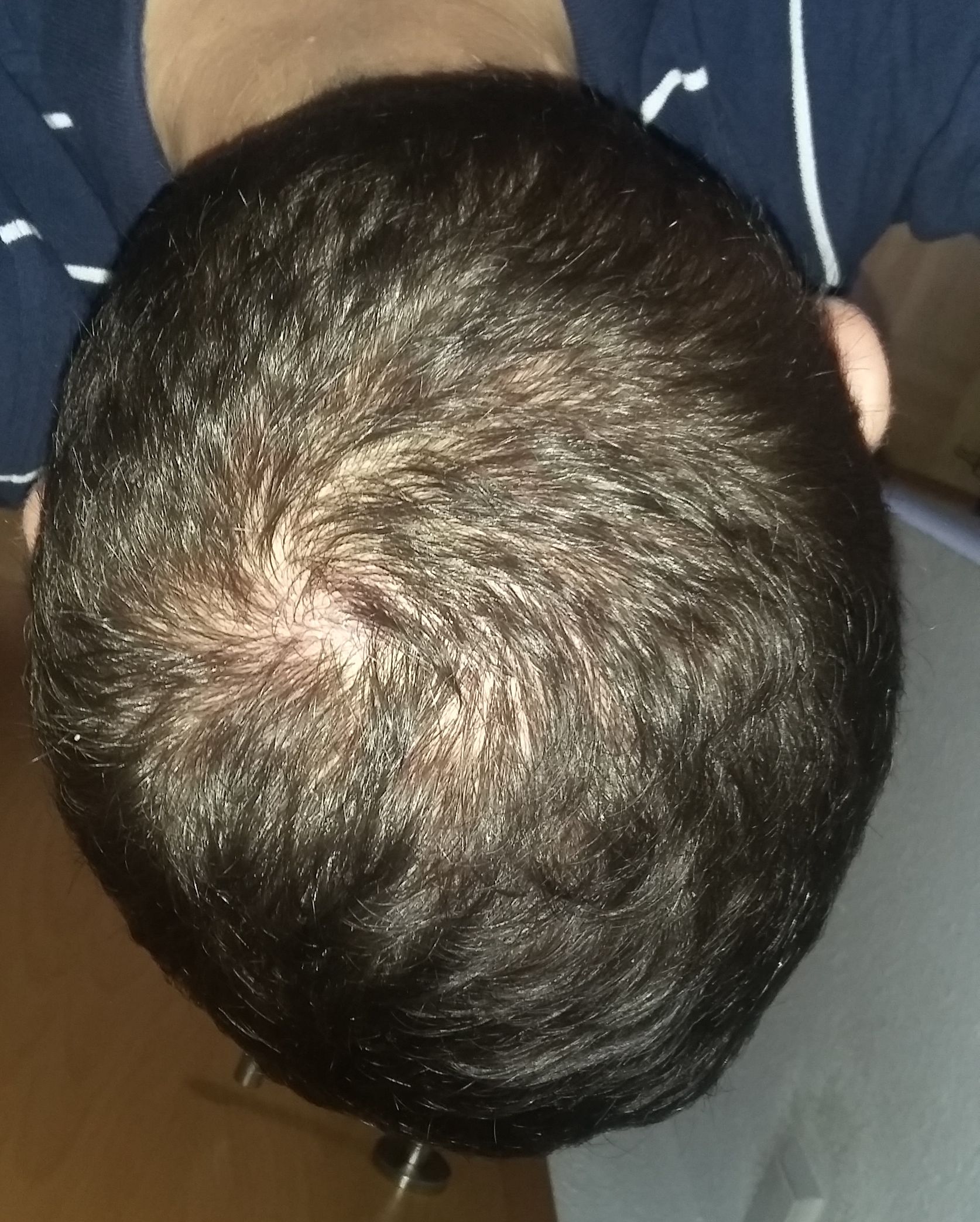 nach längerer Inaktivität melde ich mich auch mal wieder. Wie man sich denken kann aus eher traurigen Gründen. Mein Haarausfall hat wieder Fahrt aufgenommen. Seit ca. 10 Jahren nehme ich Fin und Minox, beides übrigens ohne spürbare Nebenwirkungen. Ich konnte damit bis vor Kurzem meinen Status wohl sehr gut halten. Und zwar so gut, dass ich die Haare schon fast vergessen hatte und leider auch dementsprechend nachlässig geworden bin. Ich habe Fin und vor allem das Minox immer unregelmäßiger und habe es auch weniger sorgfältig aufgetragen. Vor allem in den letzten Monaten. Fin habe ich vielleicht noch 3-4mal in der Woche die geviertelte Fincar genommen und den Foam auch nur noch 3-4 mal die Woche ziemlich schlampig aufgetragen. Habe mir dann auch aufgrund des erhöhten Haarverlustes keine Sorgen gemacht, da ich solche Phasen immer wieder hatte, was sich meist in ein paar Monaten wieder gelegt hatte. Mittlerweile rieselt es aber doch schon ungewöhnlich lange. Vor ein paar Tagen war ich dann beim Friseur und die Bilder sprechen dann eine deutliche, ausgedünnte Sprache......