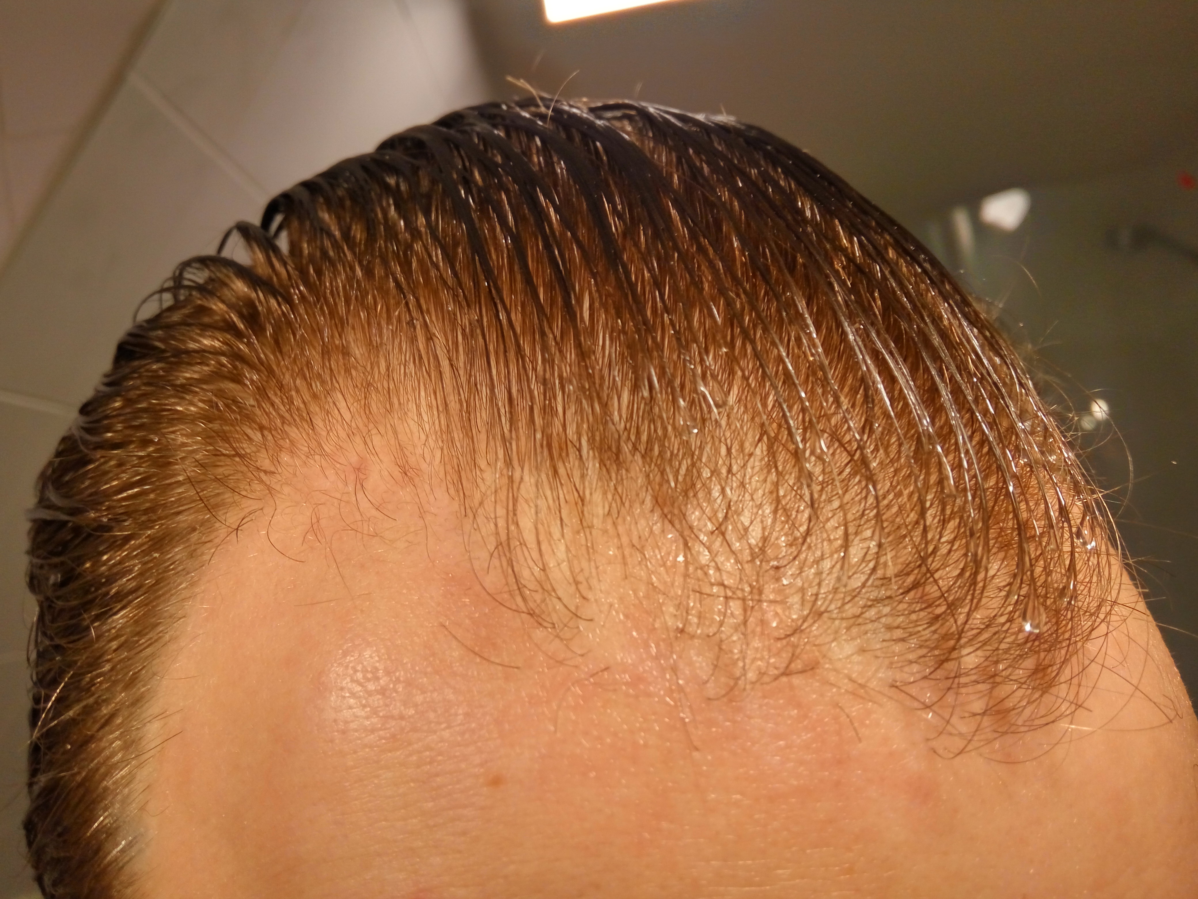 Hier mal nach etwa 5-6 Wochen Anwendung Ende Februar, da sieht man die ganzen kurzen Neu-Haare am besten. Viel mehr ist dann leider nicht passiert. Nur noch vereinzelt kommt was nach.