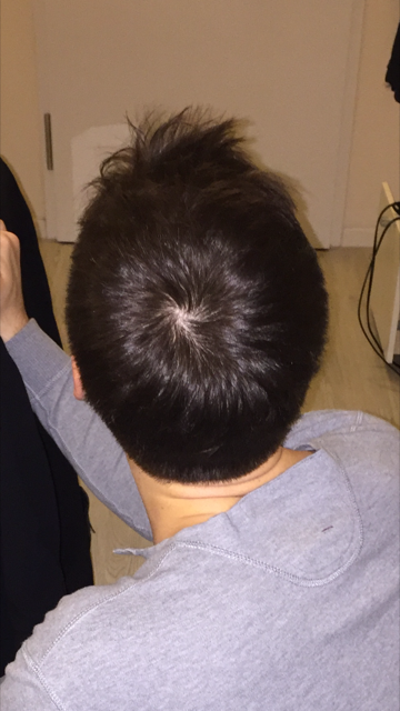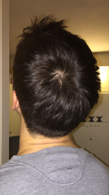 Ja, genau meine Haare sind ca 4cm lang. War erst vor einer Woche beim Friseur. Der sagte mir auch, dass es normal sei. Das erste Bild war frontal auf den Wirbel. Hier mal eins von der Seite wo ich finde dass es am komischsten ausschaut. Hatte schon immer einen ausgeprägten Wirbel.
