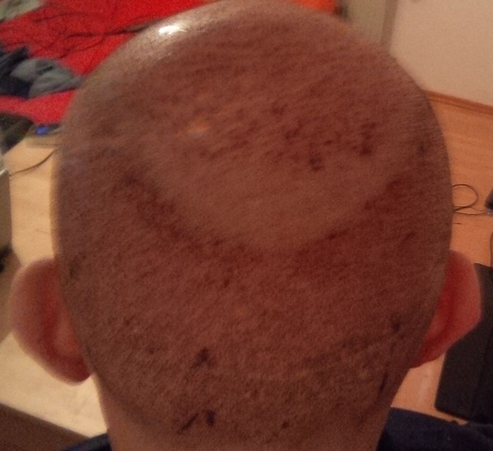 Interessant wird für mich u.a. die Sache mit dem Bart... Die 340 Grafts vom unterm Kinn wurden ausschliesslich in den Vertex (oberer Hinterkopf) verpflanzt. D.h. ich kann isoliert sehen, ob auch Barthaare genauso gut anwachsen am Kopf - und wenn ja - dann habe ich mit meinem dichten Bart eine weitere große Spenderfläche für eine evtl. weitere OP.