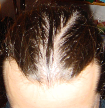 Noch einmal zu meinem Haarbild: Wie gesagt, die GHE waren immer schon exakt so, wie Du sie auf dem Bild siehst. Auch vor 20 Jahren. Lediglich in der Mitte die kahlen Stellen haben sich sehr rasch in den letzten Monaten ausgebildet.