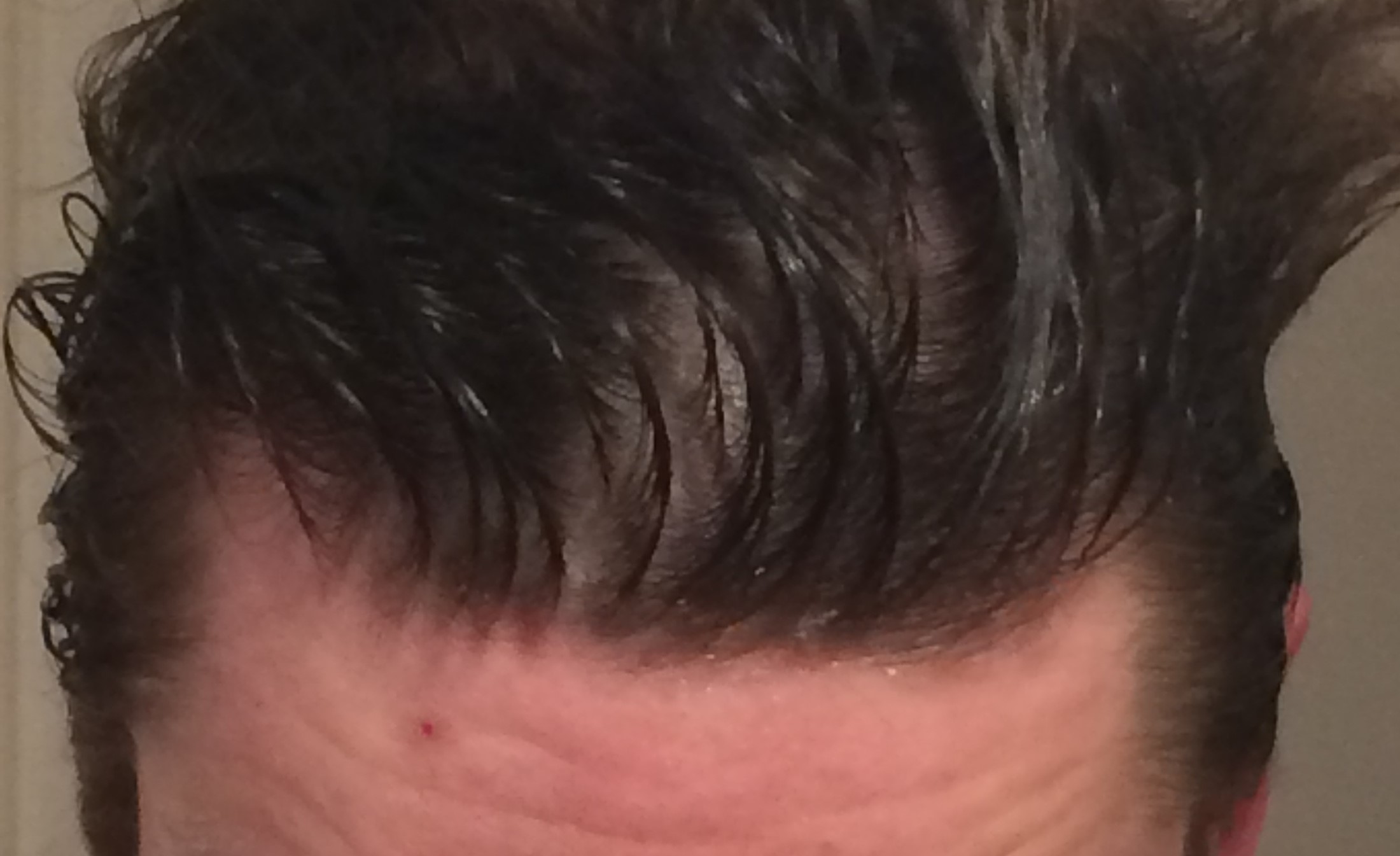 Ich kann hier null GHE erkennen. Wenn überhaupt kann ich eine minimal dünner werdende Front im nassen Zustand erkennen, aber das kann auch am dünnem Haar liegen.