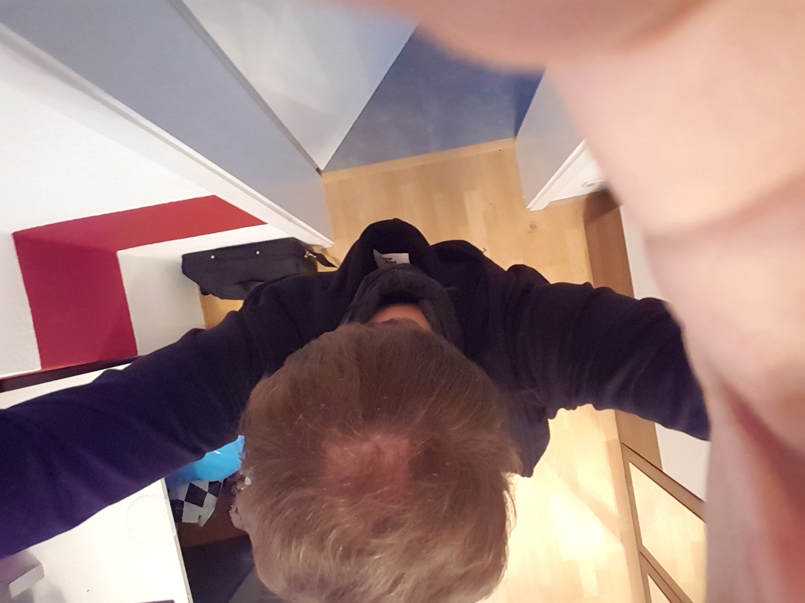 Das dritte Bild ist von oben, wo man sieht, dass die Tonsur auch so "langsam" am durchscheinen ist (wobei ich grad erschrocken war, dass sie doch so sichtbar ist ^^')