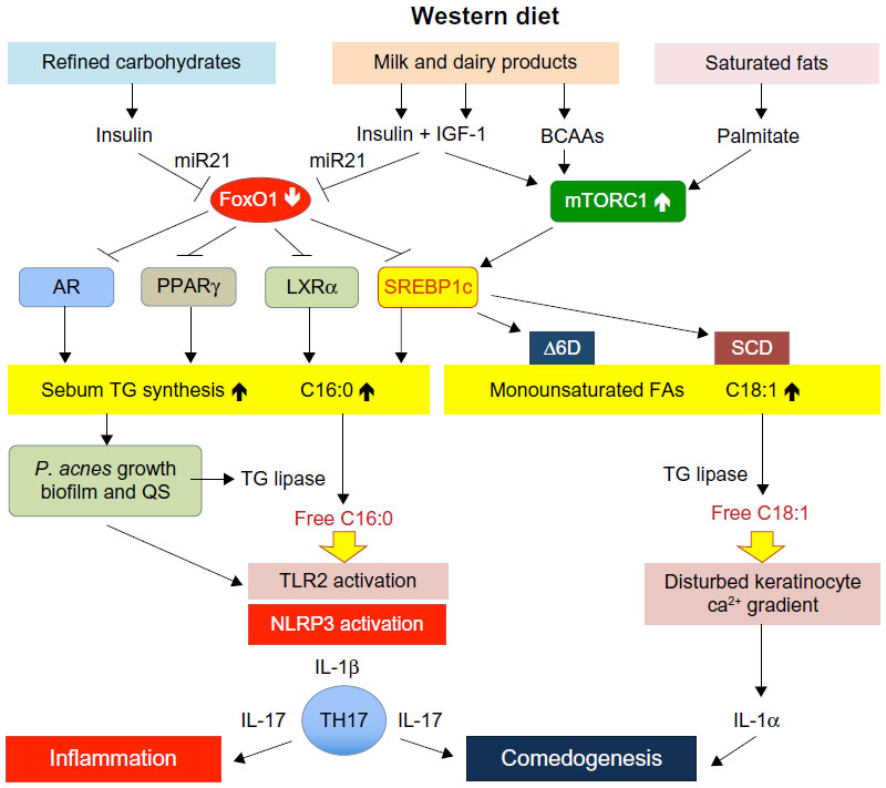 Insulin und igf1 aktivieren mtorc1 und tragen zu Sebum bei!
