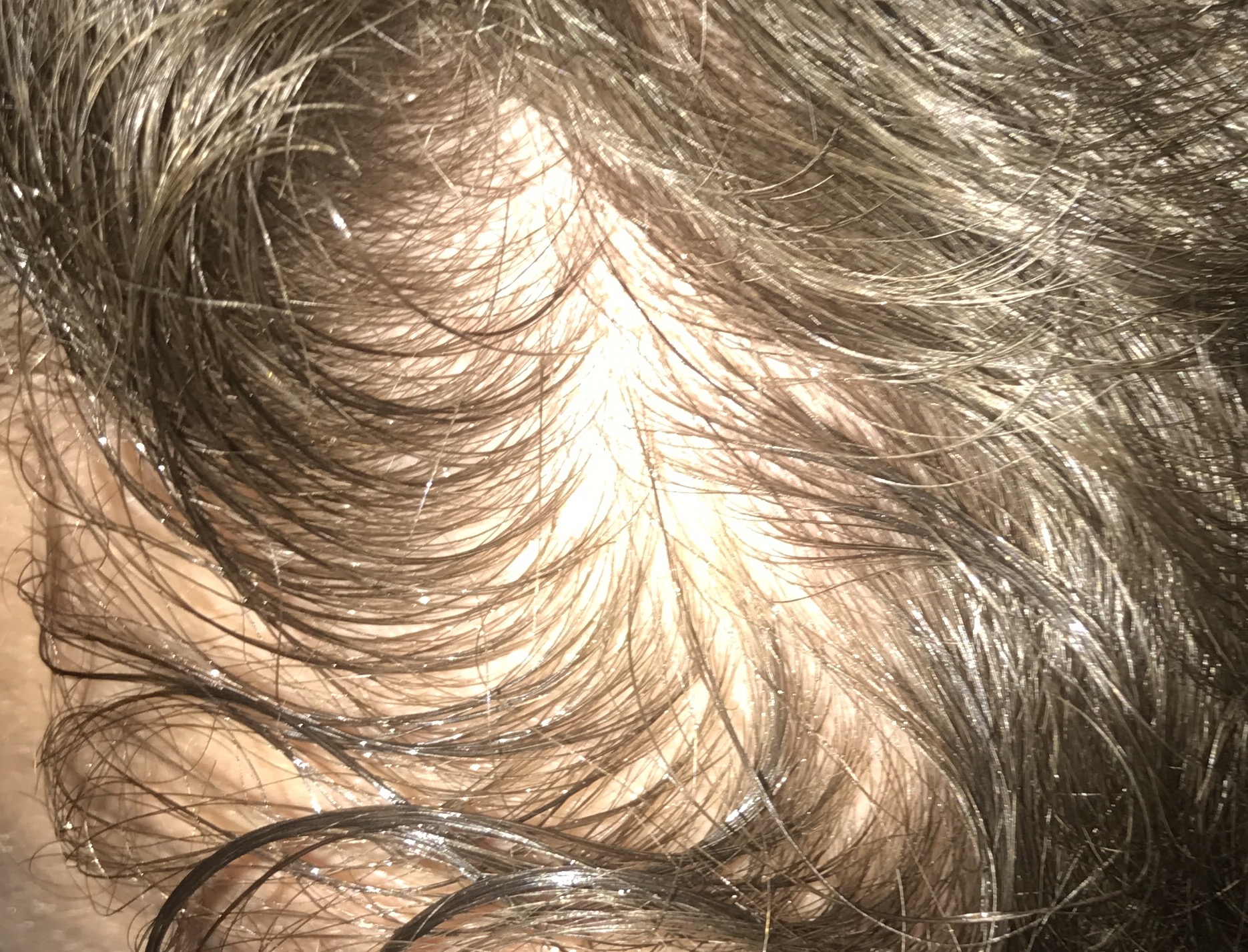 Das es nicht wirkt, ist OK. Das schlimme an der Sache ist, dass sich diese Stelle in rasanter Geschwindigkeit lichtet. Man sieht wie gesagt fett Kopfhaut durch und von oben sieht man ein Loch der grösse 1cmx2cm, wo man direkt auf die Kopfhaut gucken kann. (Entdeckt mit meiner Cam bei Vogelperspektive Bild).