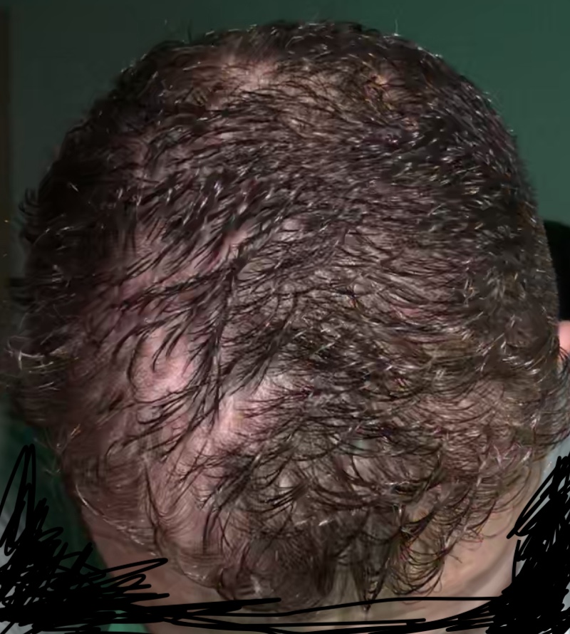 Am Hinterkopf ist nichts, die Haare stehen halt ab und daher sieht es so aus. Auf dem Oberkopf wird es AGA sein.