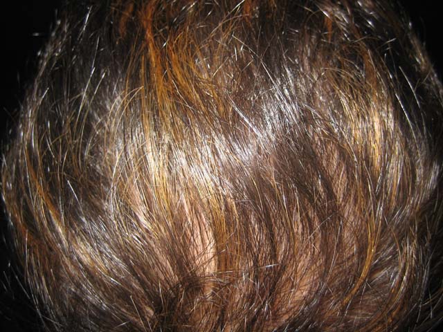 Du bist aber iemlich am anfangsstatium.......es ist halt so, bis man einen HA bemerkt (gerade im Scheitebereich) sind schon mindestens 20% der Haare ausgefallen!