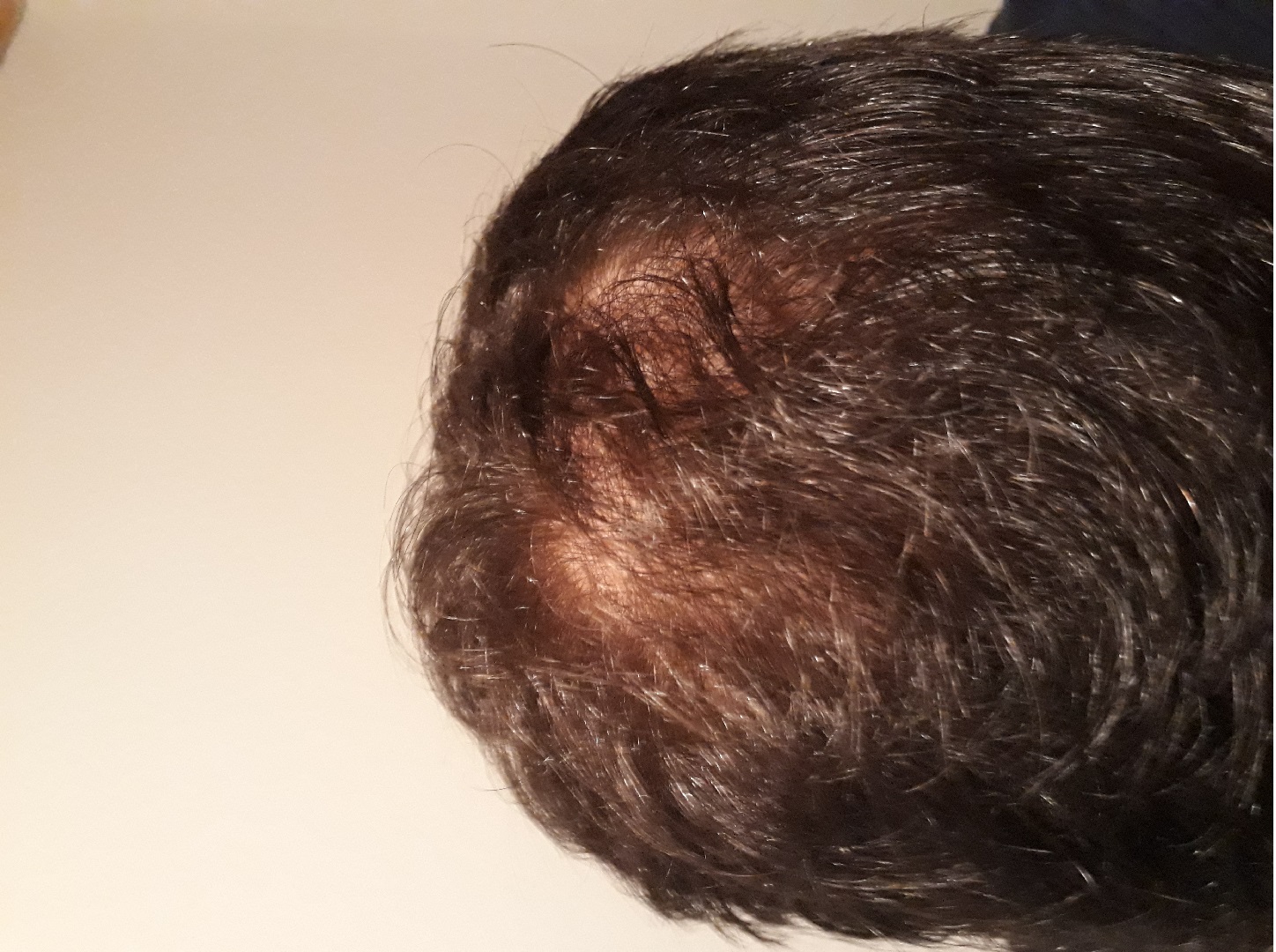 Seit ca 3 Jahren fallen bei mir vermehrt Haare am Oberkopf aus. Der Hautarzt bestätigte mir AGA und hat mir Minox 1x täglich empfohlen.