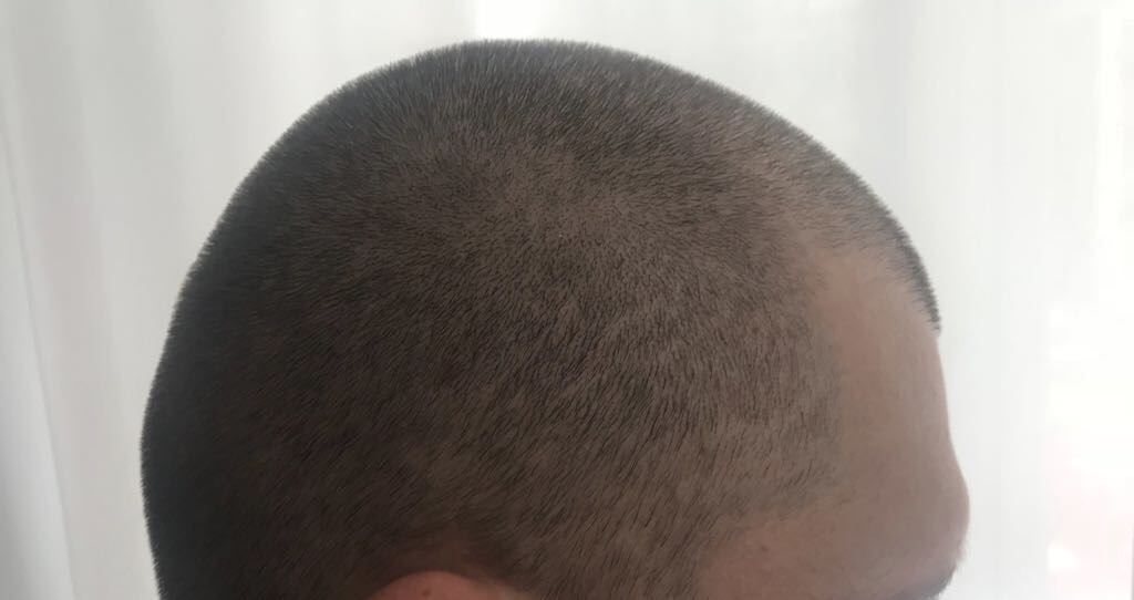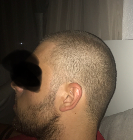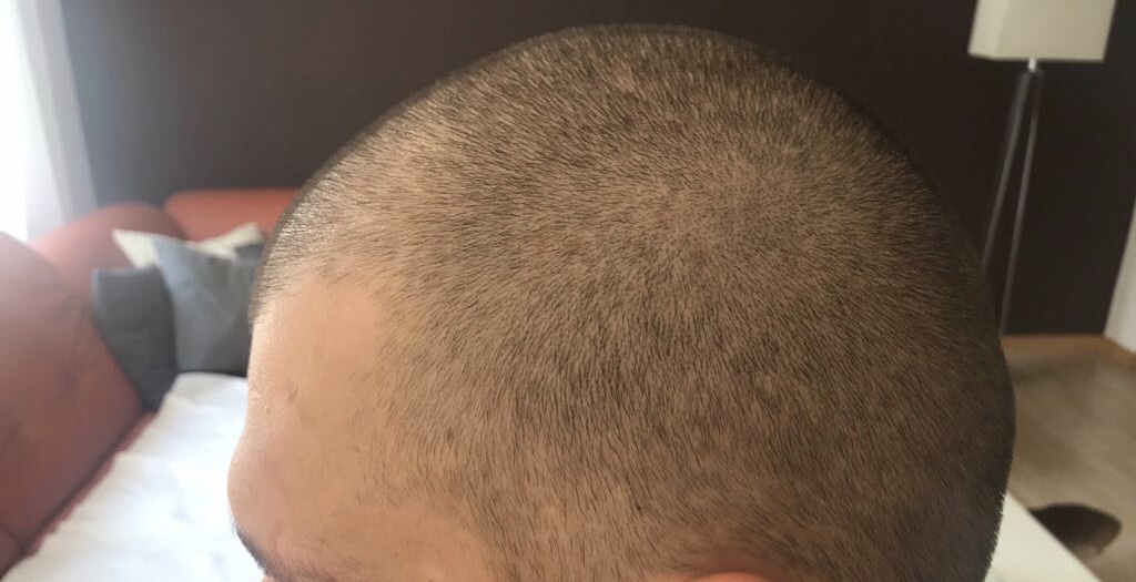 AGA diffus aber mit kleinen runden kahlen Stellen. Wenn Ihr euch das zweite Bild ansieht, sieht Ihr diese Stellen gut. Gesamter Kopf + Seiten, nur der Oberkopf ist noch diffuser ausgedünnt. Kopfhaut Gefühl extrem unsngenehm. Ziehen, jucken, brennen, Pickelcjen, rötungen Oberkopf, Talg, GEHEIMRATSECKENSCHMERZEN BEI KALTEM WASSER!,?also all die super Sachen die wir ja so lieben..