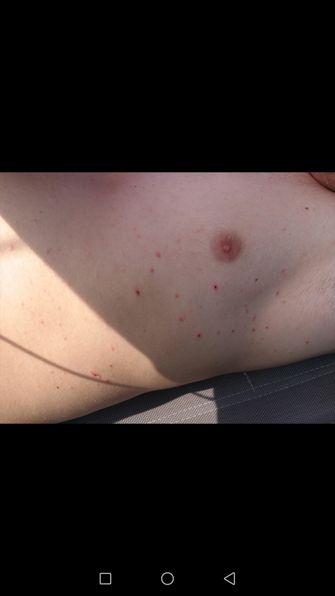 Jetzt habe ich allerdings seit 2 bis 3 Tagen Ausschlag an der Brust und am Bauch. Es juckt bicht und sieht sehr komisch aus.