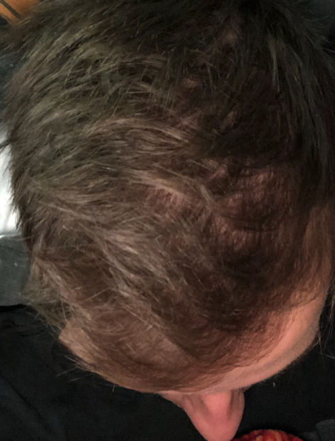 Das du vorne eine Ausdünnung hast ist unbestritten. Wie siehts hinten an der Tonsur aus?