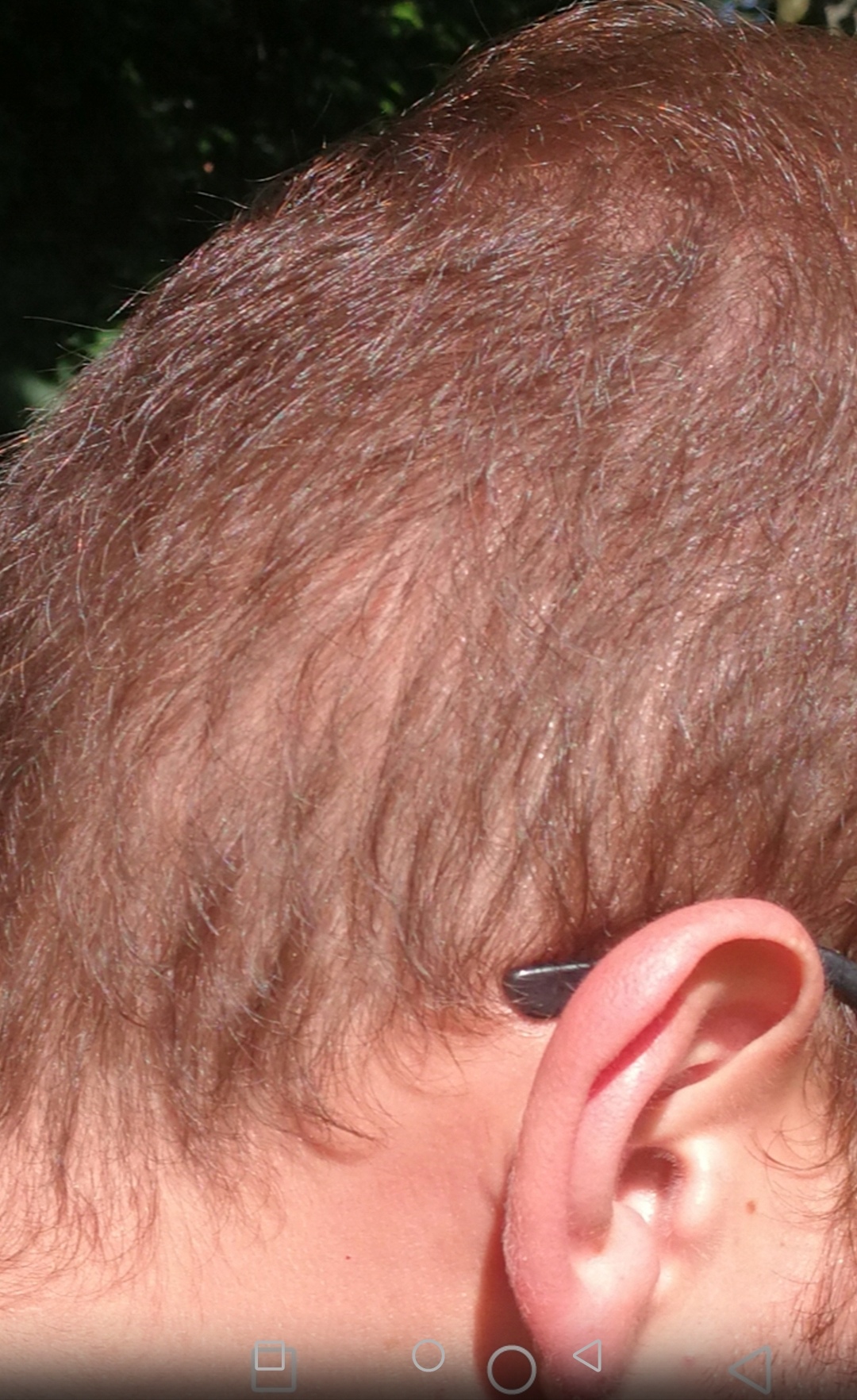 Das vergleichsbild wurde aber auch mit Blitz gemacht und ist daher relativ gut beleuchtet. Auch wenn sonnenlicht nochmal stärker ist, müsste man beim Bilf mit Blitz die Kopfhaut auch viel stärker sehen wenn es schon länger so wäre
