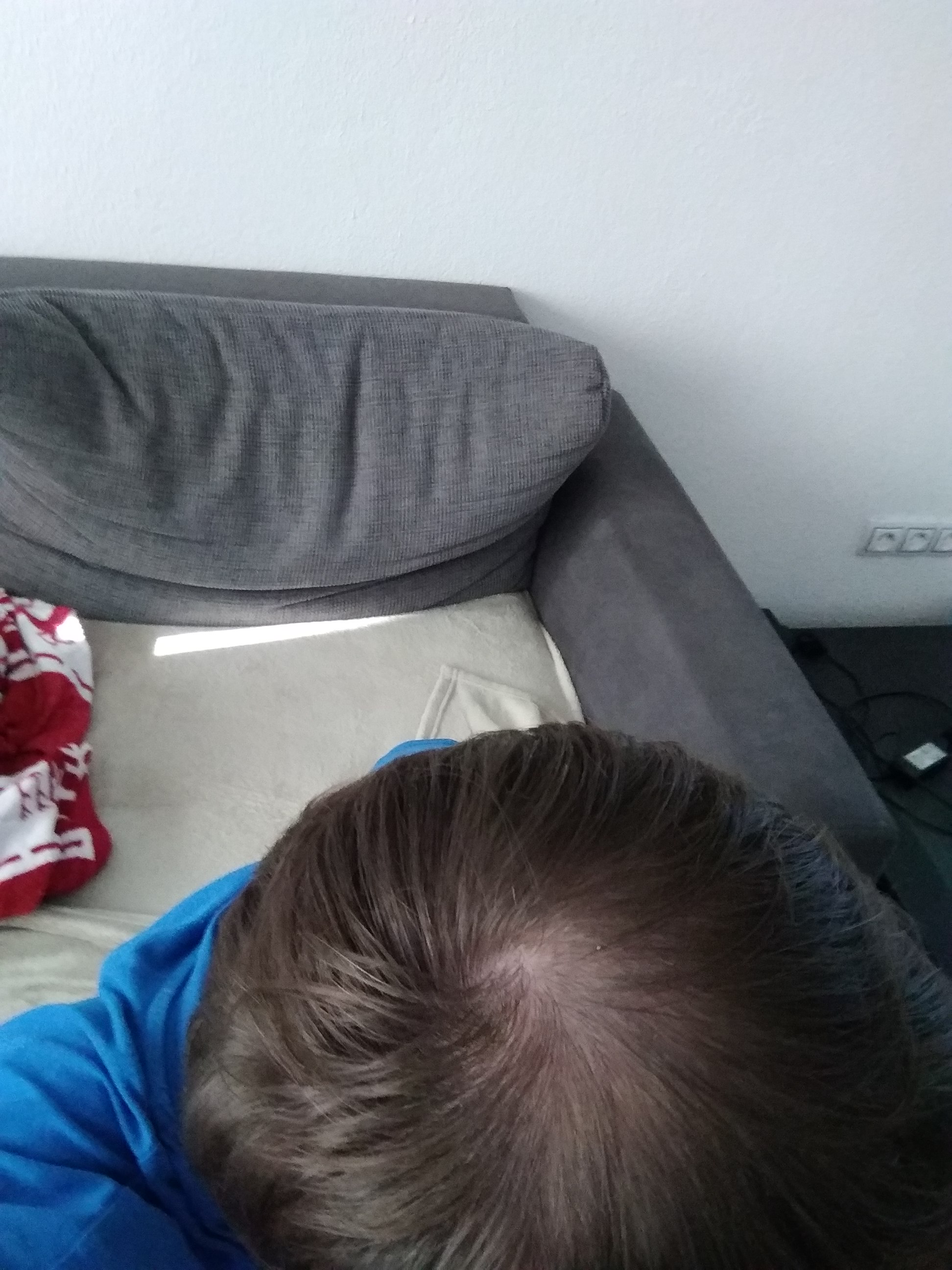 Ich habe keine einzig kahle Stelle. Nur die Haare dort hinten sind halt seit Jahren in dem Zustand, unverändert. Sie werden nicht weiter dünner aber auch nicht dicker.