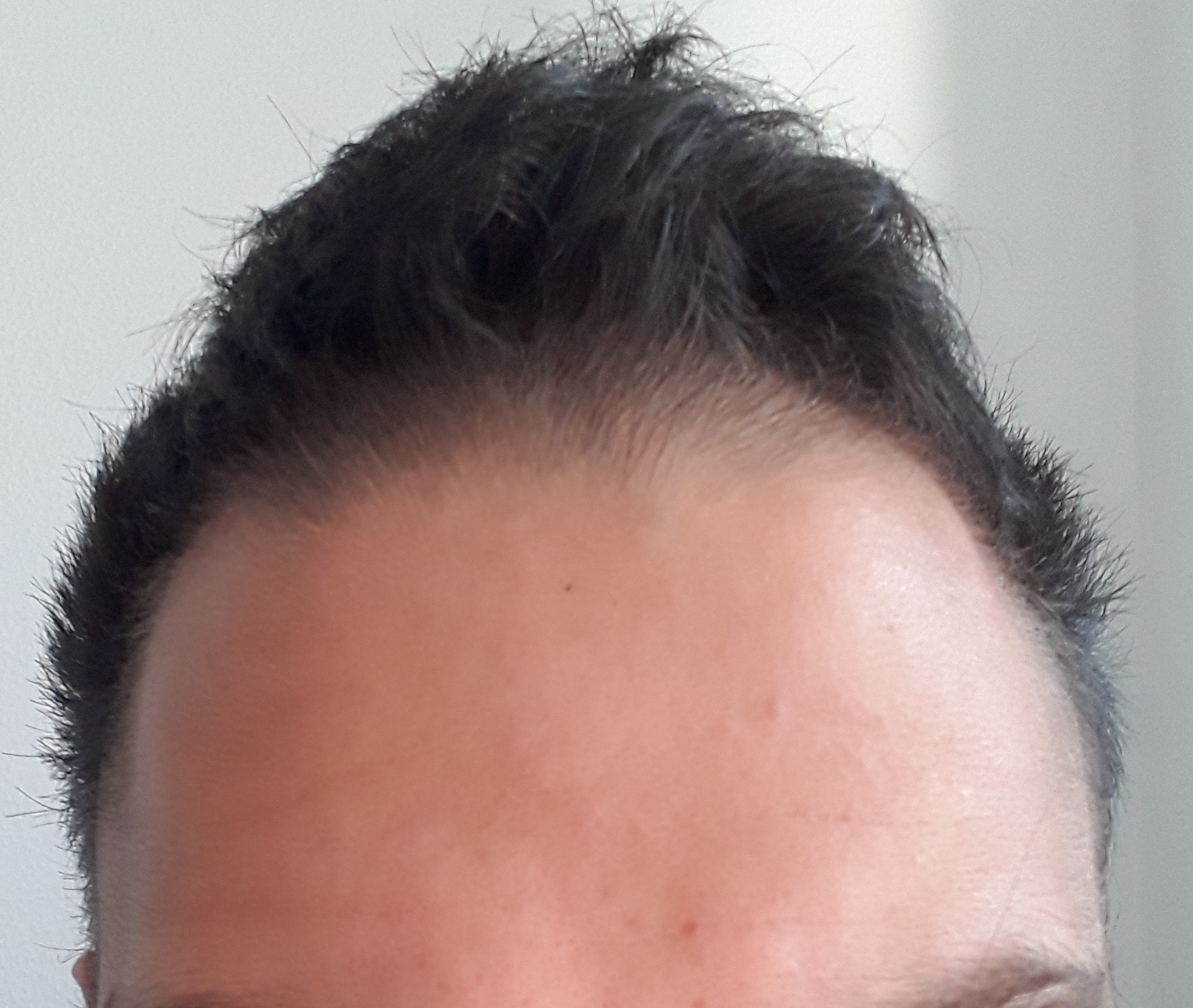 Seit 3 - 4 wochen und zwischenzeitlichem Friseurbesuch habe ich aus meiner Sicht extremen haarausfall so dass an der Front sogar meine Kopfhaut durchschimmert (ohne Licht und bei ganz normalem Tageslicht siehe Bild) aber den Vertex hats auch übel erwischt. Mit zurechtrücken - egal wie lange - ist da nix mehr. Man erkennt relativ leicht die Platte umgeben von größtenteils mickrigen häärchen. Weiß nicht ob es nur da extrem ausgefallen ist oder allgemein, da ich eigentlich nur auf die beiden Bereiche achte oder bis vor kurzem eigentlich nur auf den Hinterkopf schielte, da vorne immer alles ok war.