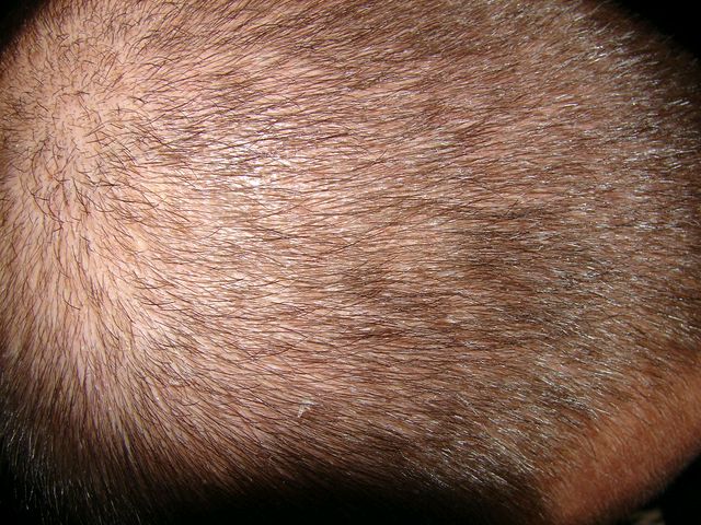 du müssest deinen kopf mal von etwas weiter weg aufnehmen. wenn die leute ihren kopf bei aufnahmen immer so dicht an die linse halten und noch keine wirklich kahlen stellen auf dem kopf haben, kann man aus nächster nähe nicht sehen, wo oder ob sich da was lichtet.