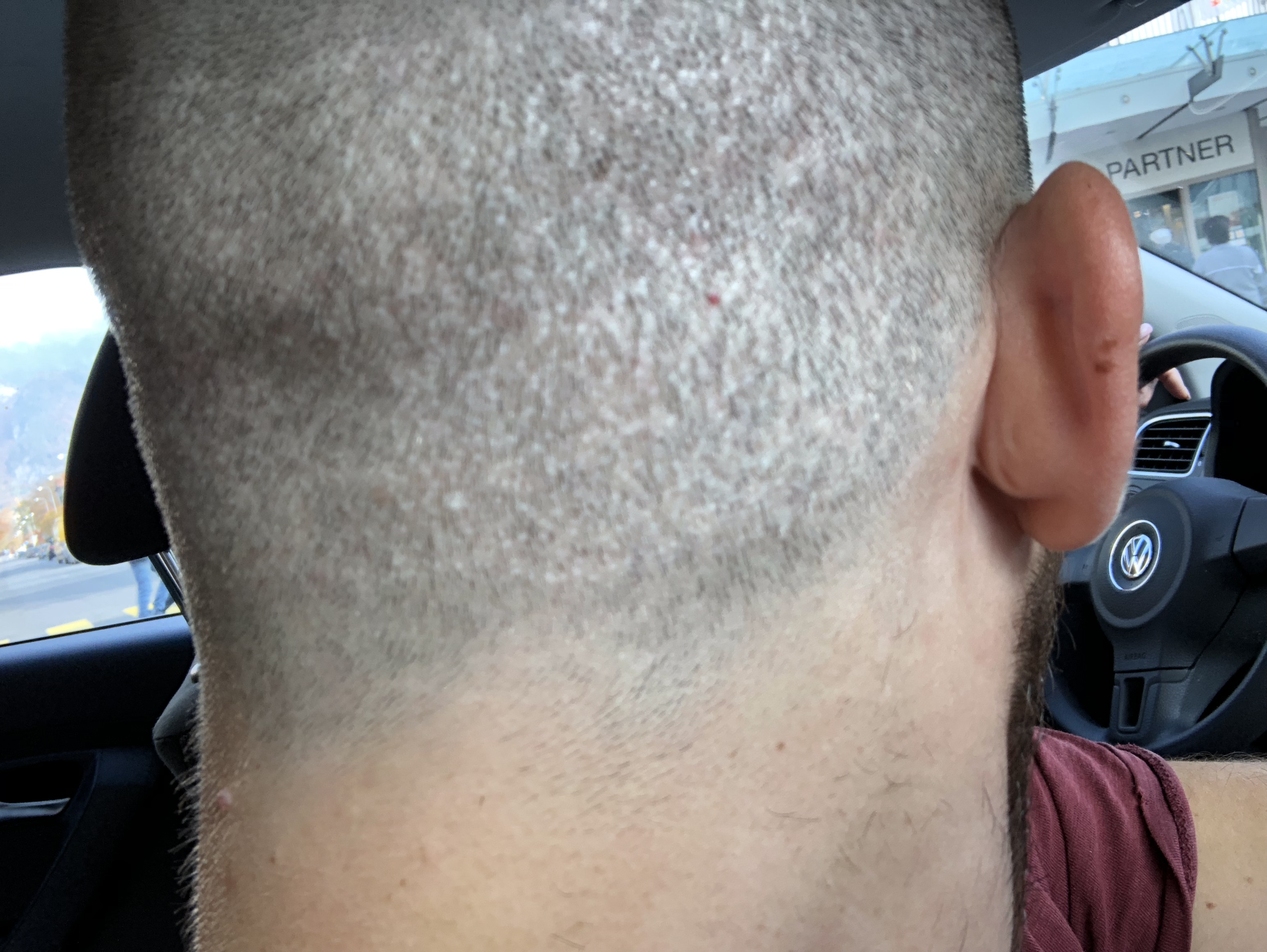 Ich habe mein Haar nur für die Mikrohaarpigmentation kurz rasiert, dass der Pigmentierer genauer arbeiten kann. Die Mikrohaarpigmentation mach ich zur Ergänzung der nächsten Haartransplantation um ein dichterwirkenderes Ergebnis zu erhalten.
