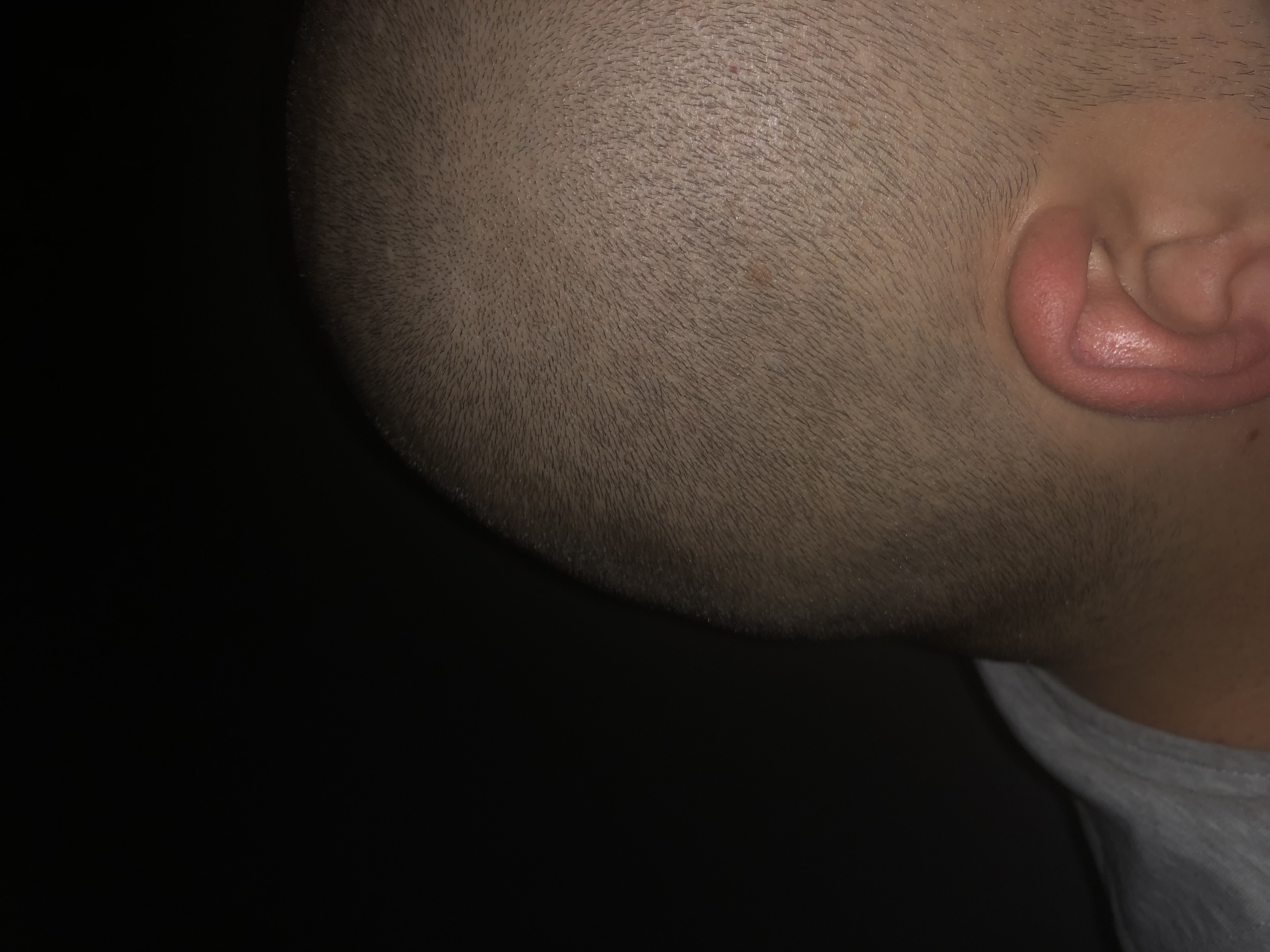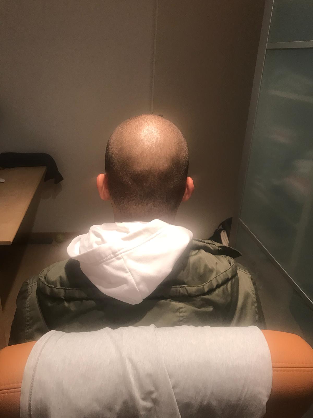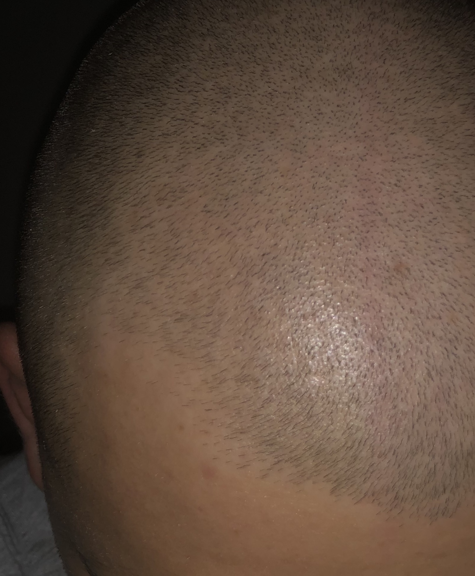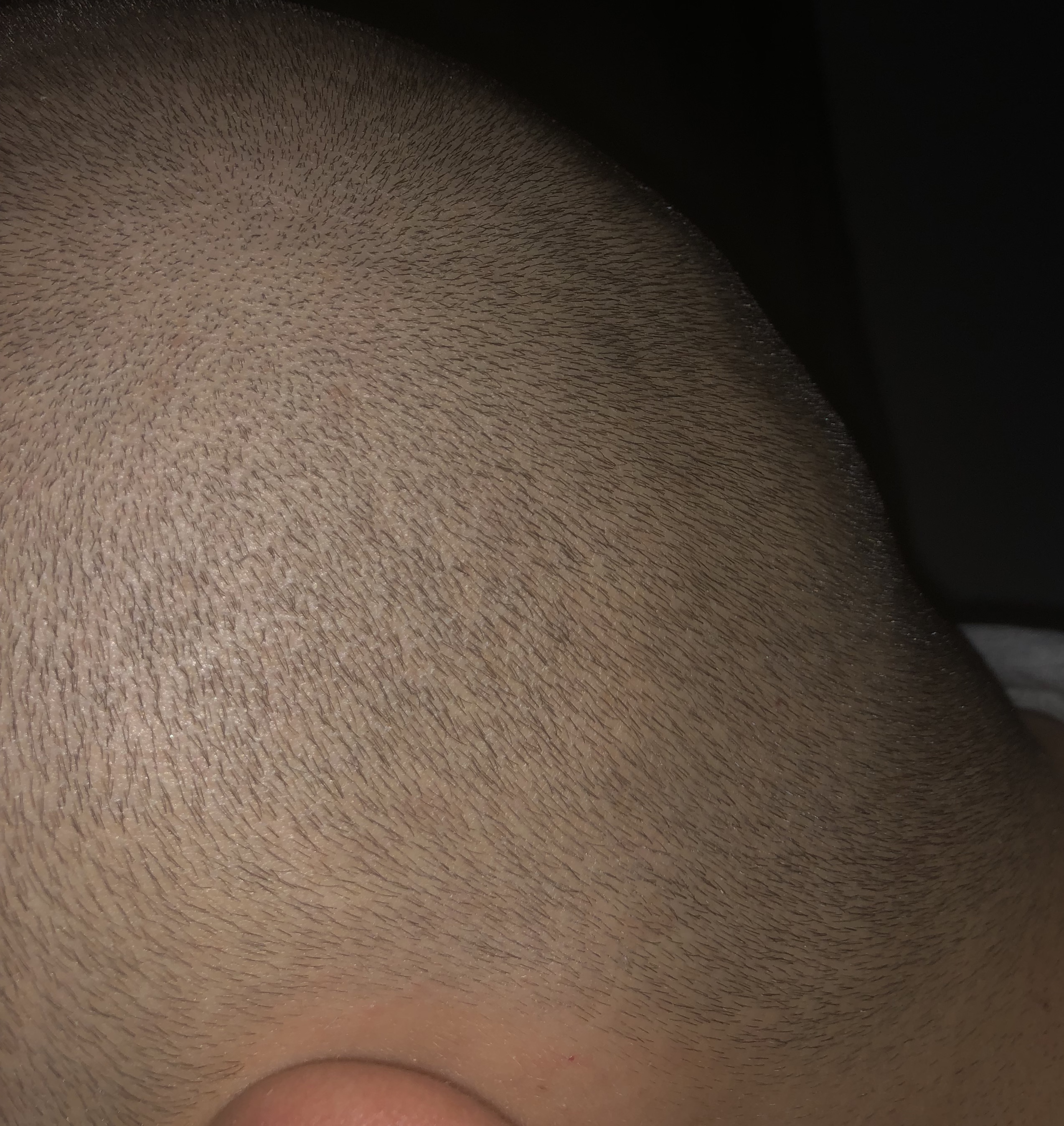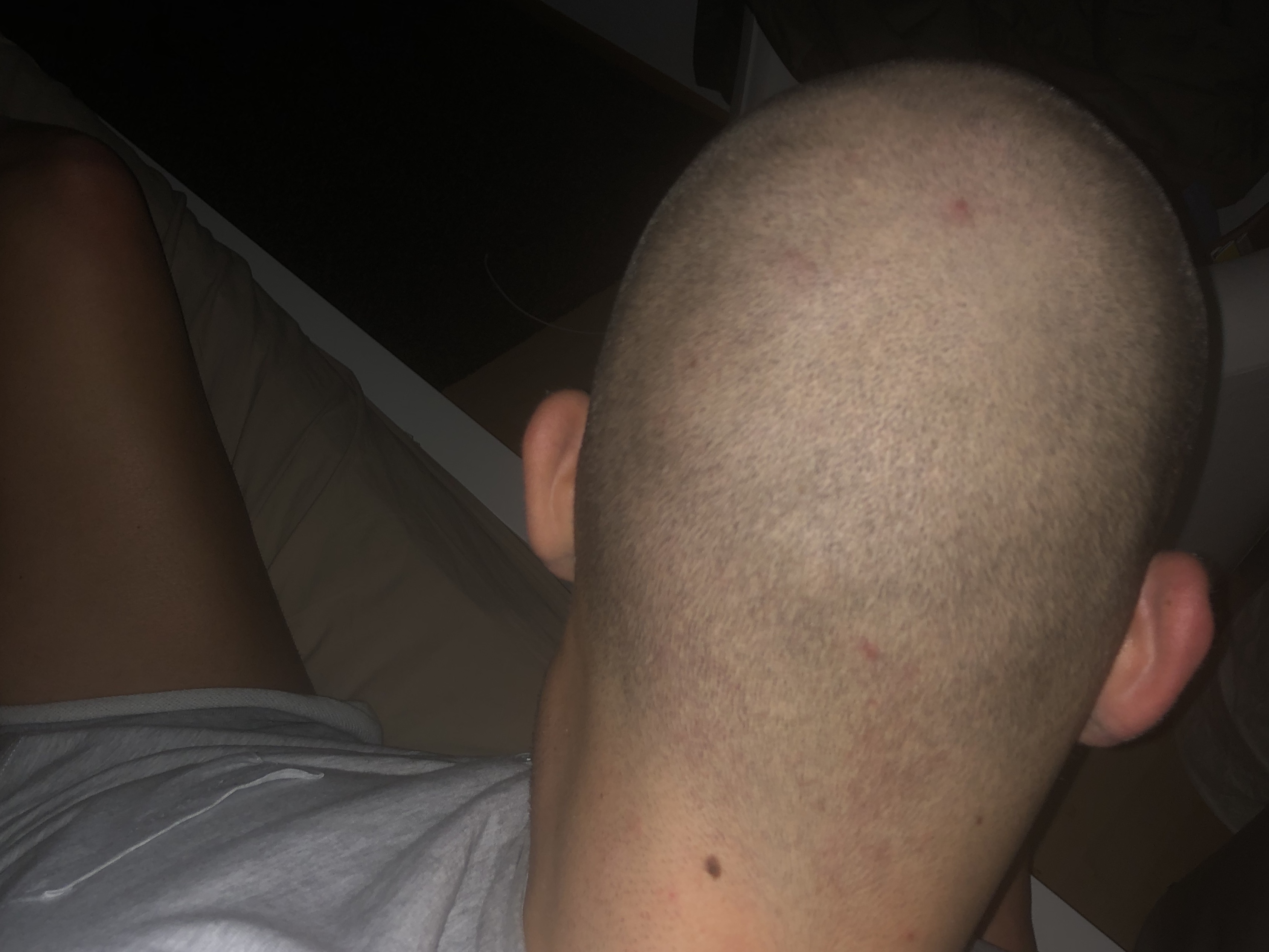 Dude so sieht das aus wenn man sich die Haare rasiert, bei jedem... ich mein die sind ja nur noch 1mm lang und stehen senkrecht in die Luft, klar siehste da die Kopfhaut...