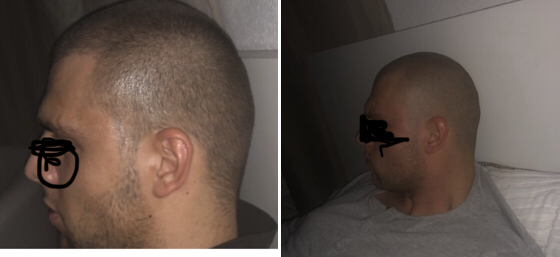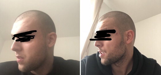 1 Tage Unterschied Haarlinie amders und Schläfen höher linls jetzt rechts 10 Tage