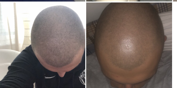 Mit kaum ein Bild kann ich was anfangen. Auf den Bildern sieht man weder die Haarlinie, Front, noch den Oberkopf bei Tageslicht! Mach mal lieber Fotos mit längere Haare und am besten bei Tageslicht. Von Front und Oberkopf!