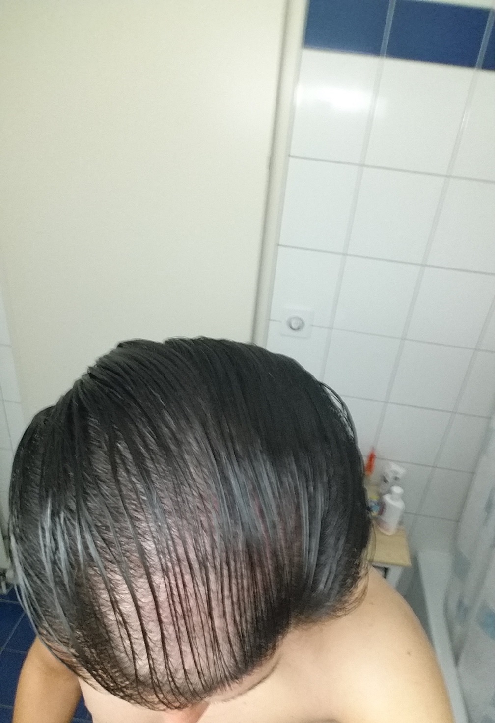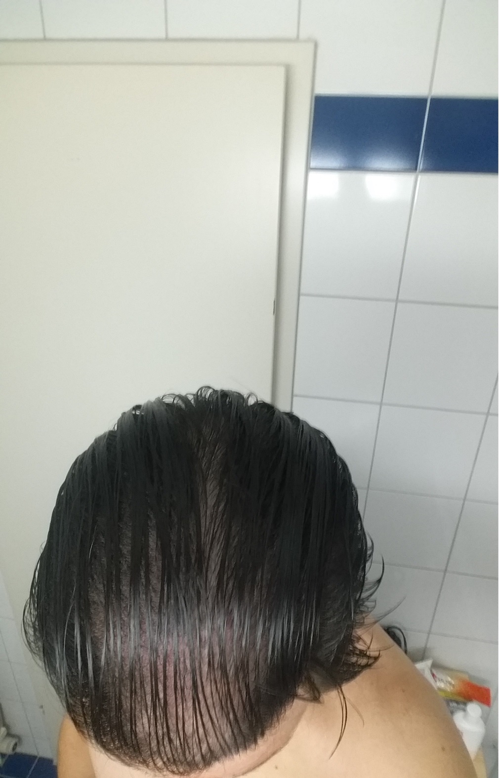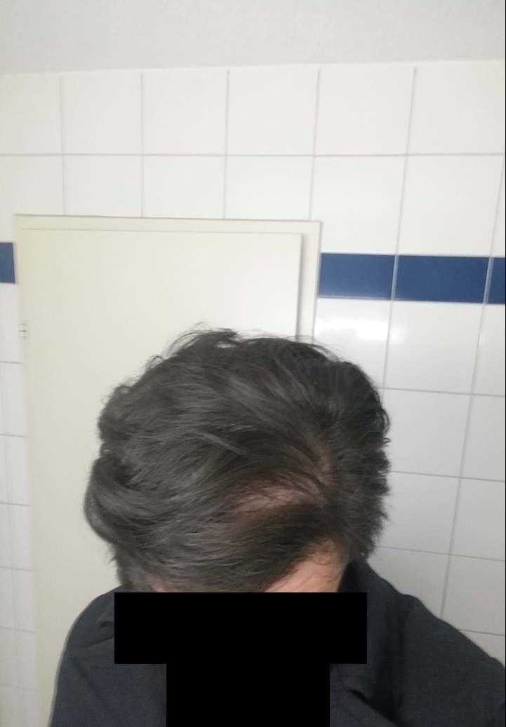 Wie auf den Fotos zu sehen ist, ist speziell die Front ausgedünnt, was mich auch am meisten stört, da man dies am meisten sieht. Ich muss dazu sagen, dass ich relativ lange Haare habe, daher sieht man mit trockenen Haaren nicht so viel. Wegen der Ausdünnung an der Front bis Tonsur muss ich allerdings die Haare relativ lang lassen und bin bei der Frisurenwahl eingeschränkt um die Ausdünnung verstecken zu können.