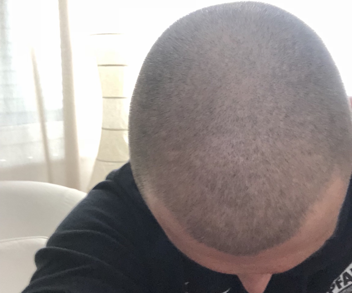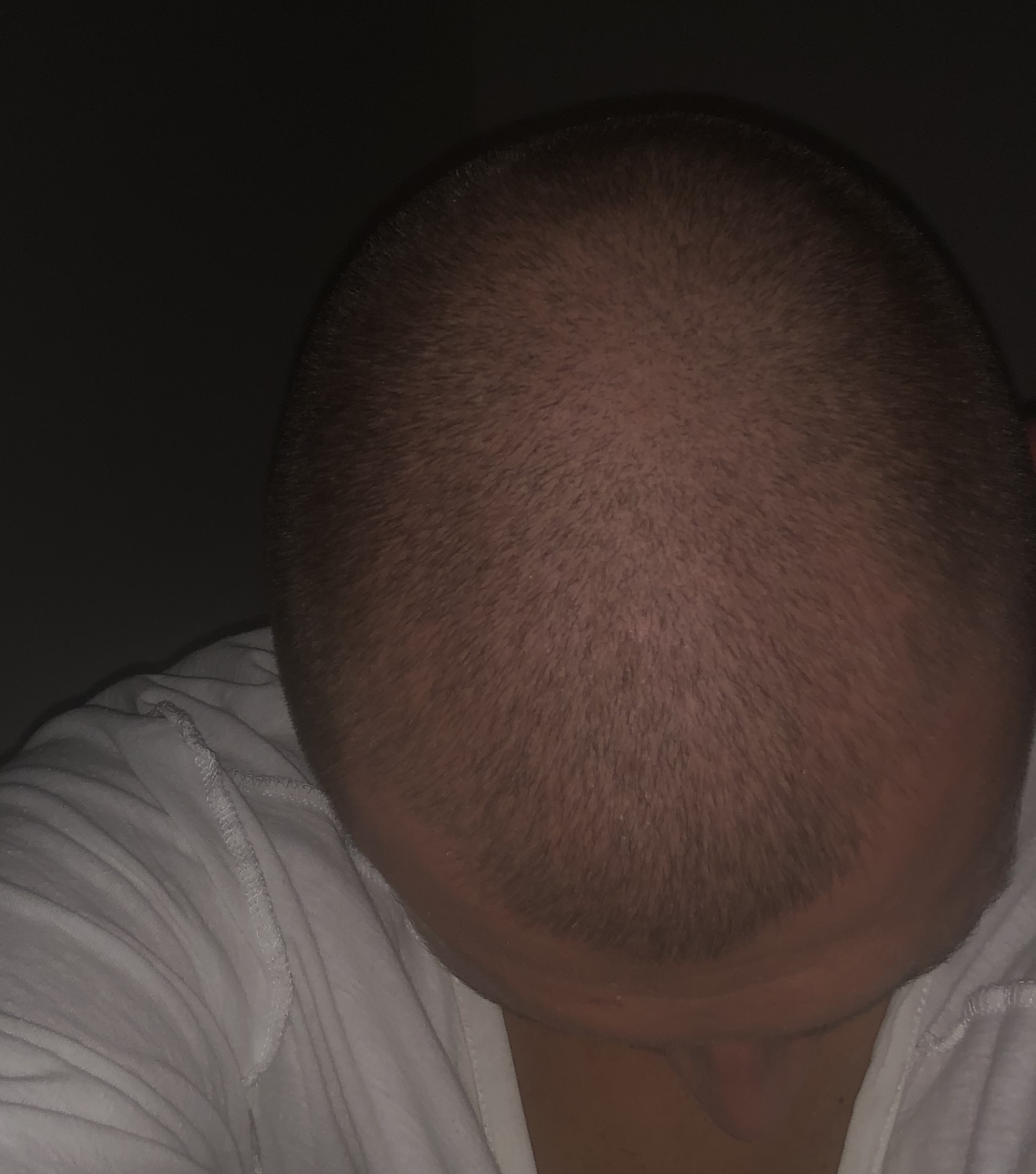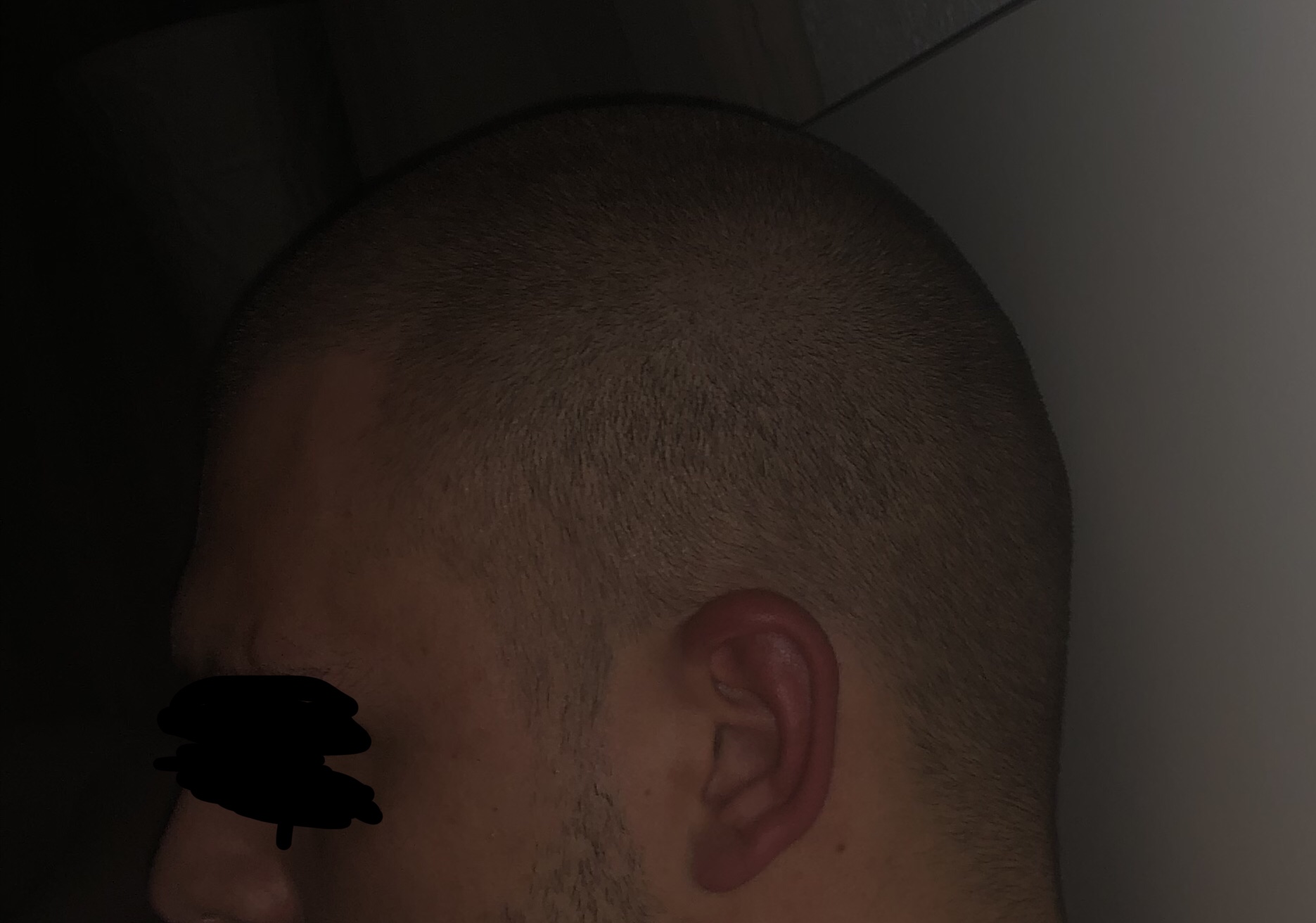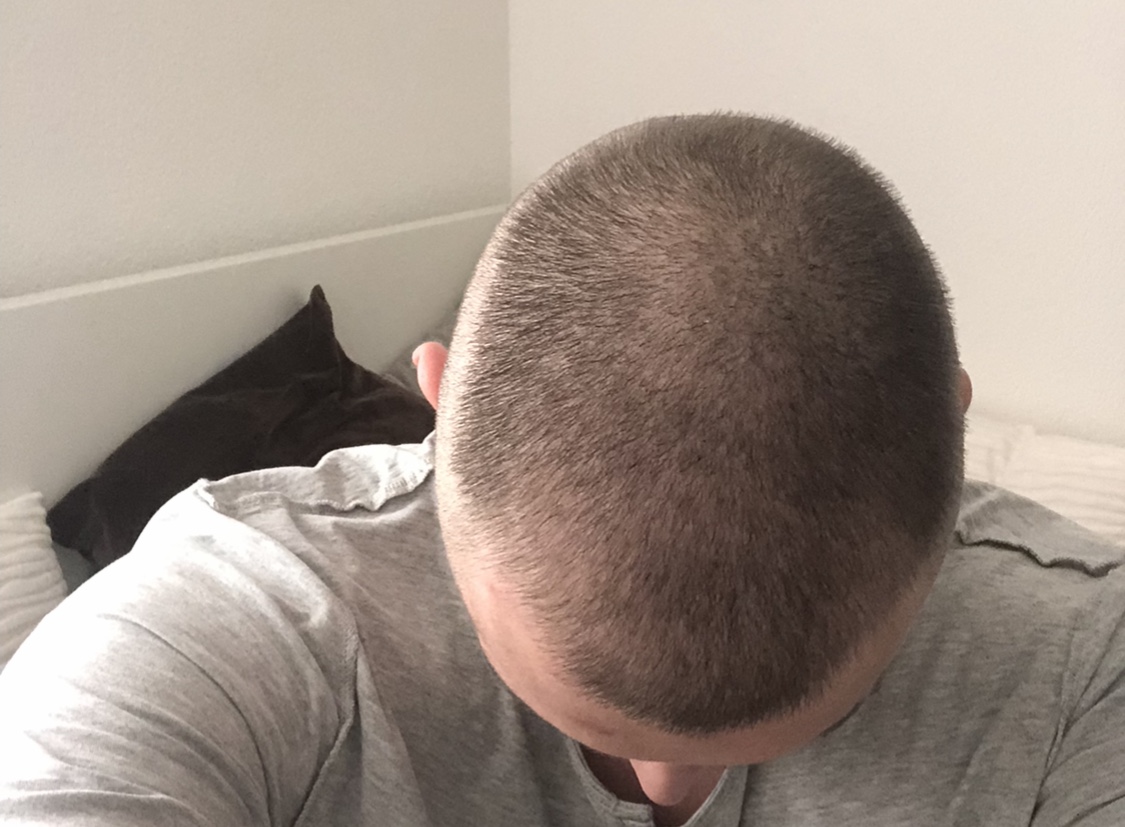 Seit November: ghes weg Schläfen weg und der gesamte Kopf ausgedünnt. Beim Buzzcut sind die Haare auch schon weich. Vor 4 Monaten waren sie noch schön hart.