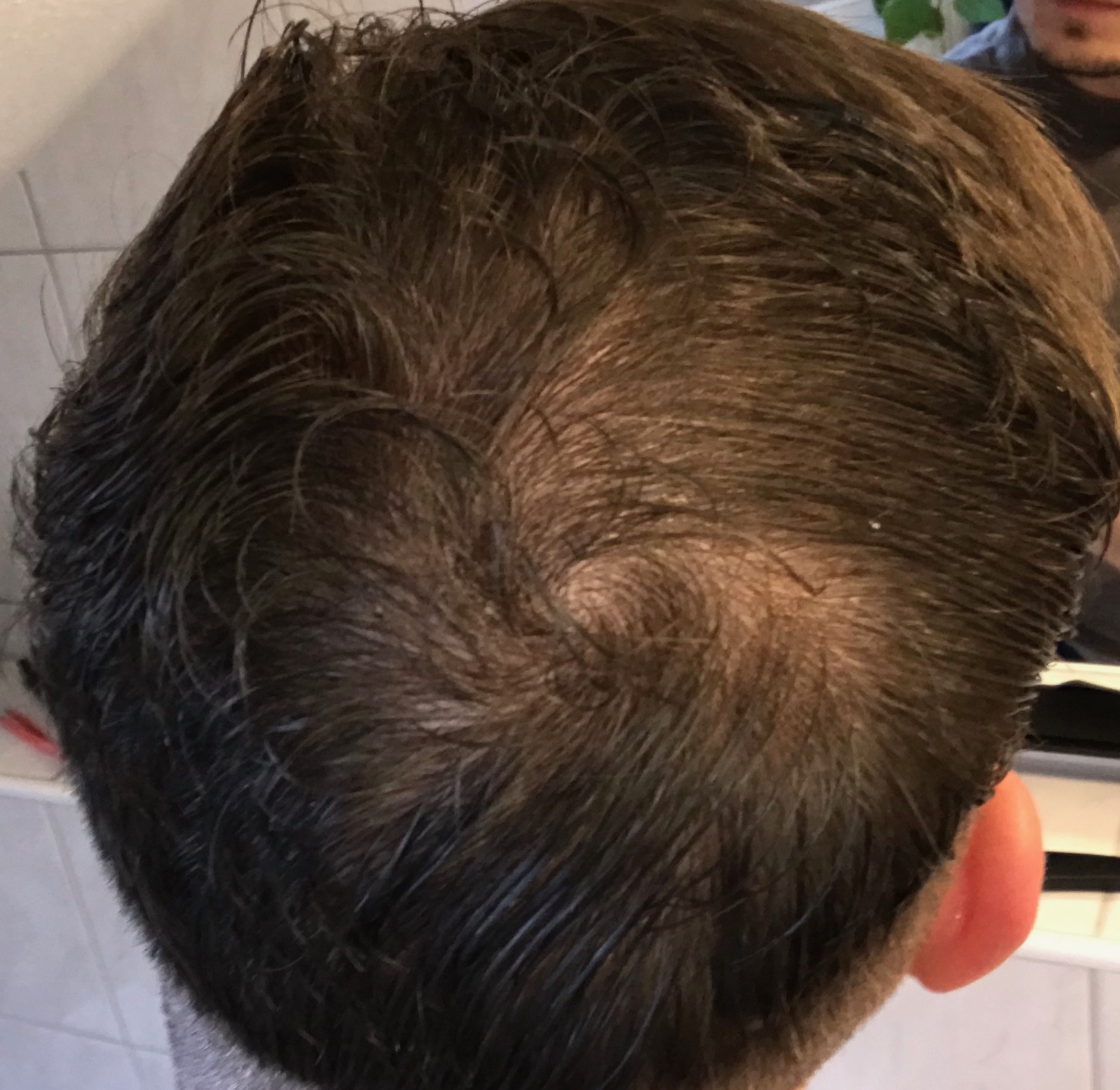 Komischerweise habe ich noch fast keine Geheimratsecken, es ist der Ausfall am Hinterkopf der mir Bedenken macht...
