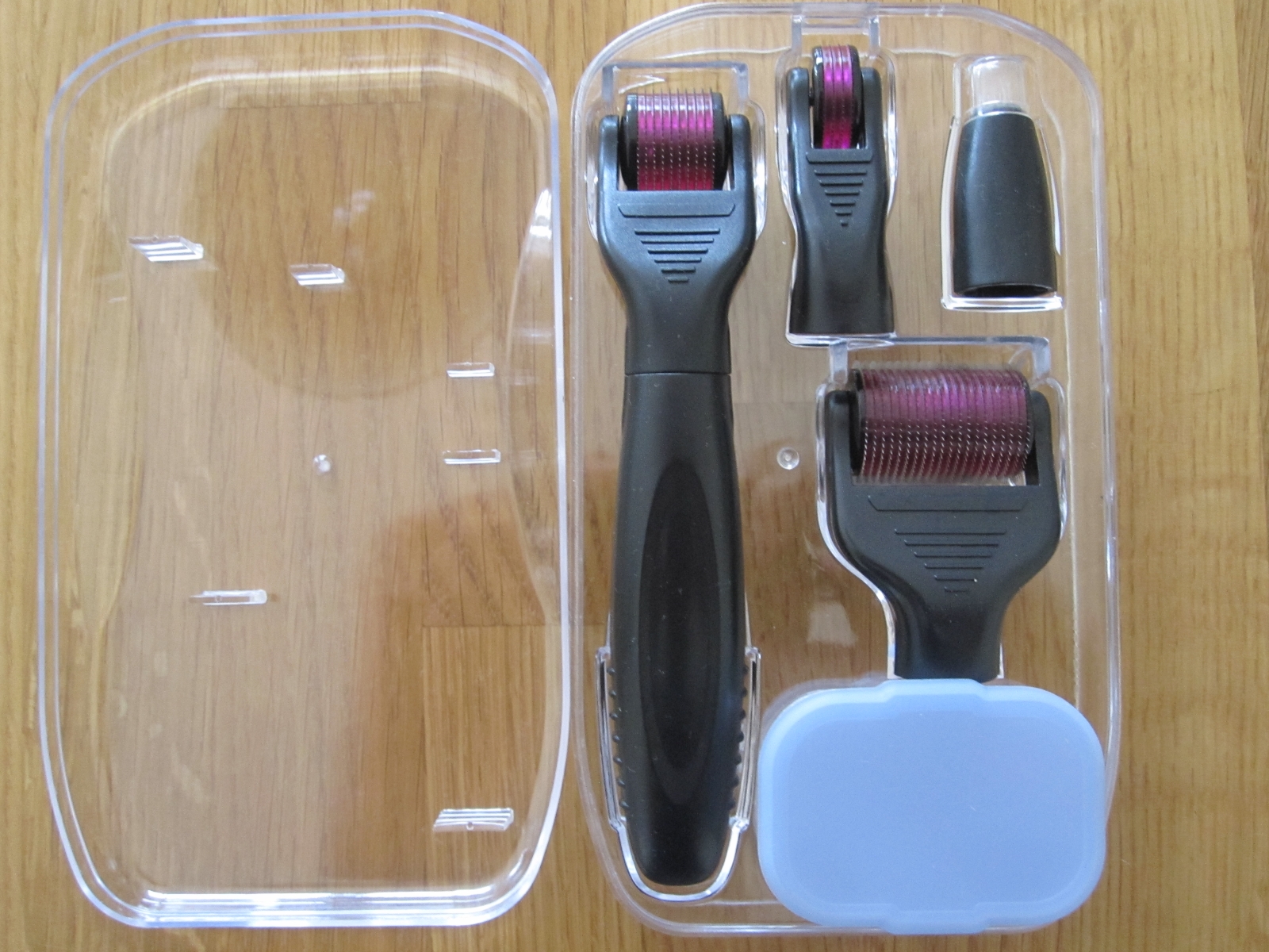 Der Dermaroller ist natürlich neu und unbenutzt und hat diverse Aufsätze und eine Box zum Desinfizieren.
