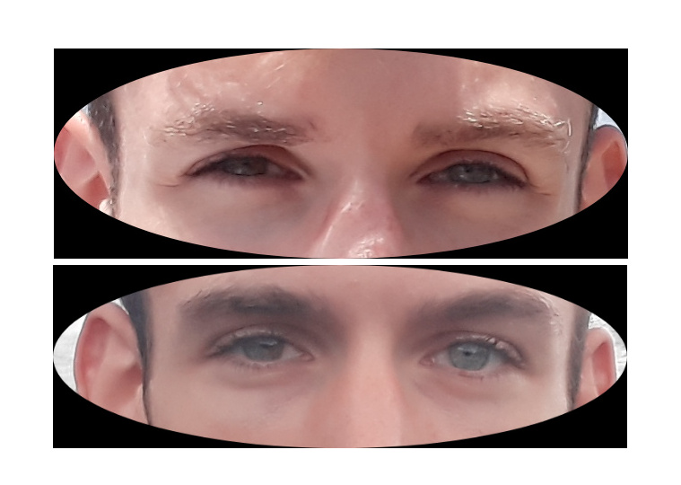 Man sieht es schon, oben, die Augenlieder, das Fett ist deutlich weniger, als auf Bild 2.
