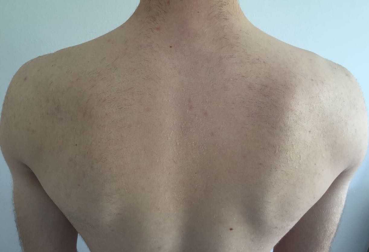 Also hier sind die Fotos von meinem Rücken VOR der Laserbehandlung.