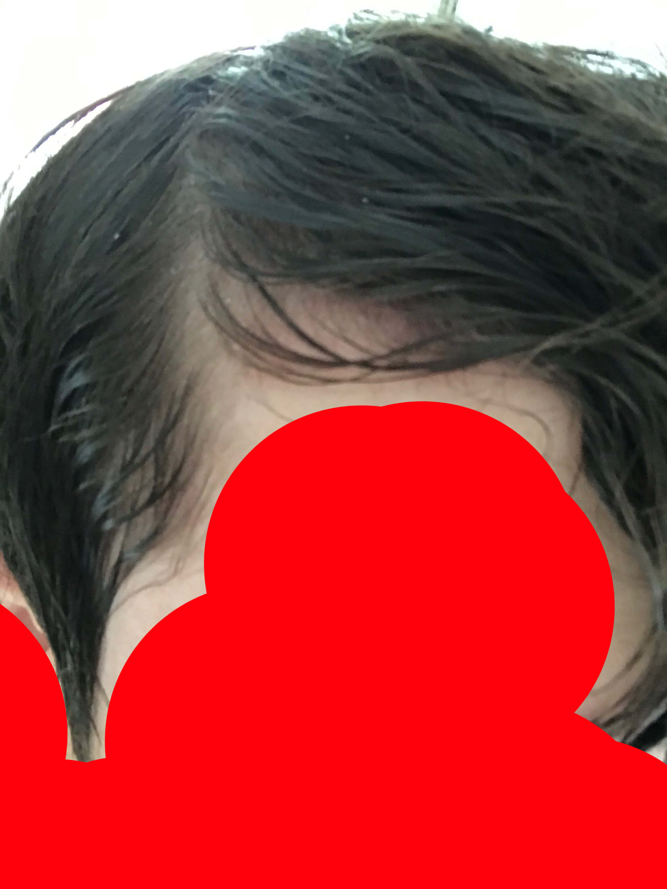 Mach doch mal Fotos mit richtig nassen Haaren, gescheitelt an verschiedenen Positionen.
