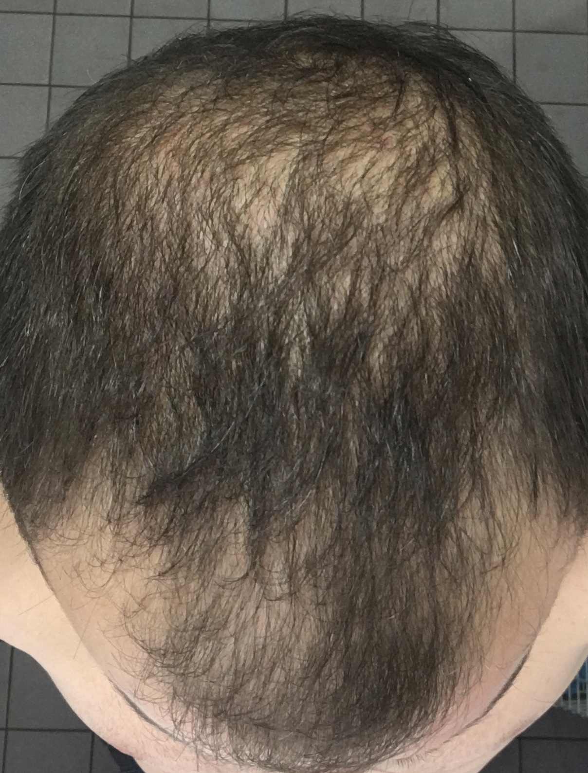 man sieht bei jeglichen lichtverhältnissen überall die kopfhaut durch.. tonsur ausgedünnt und ghe wurden größer