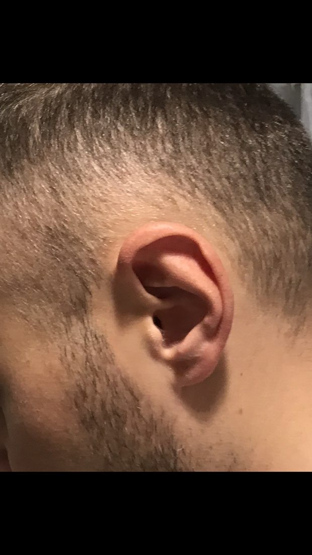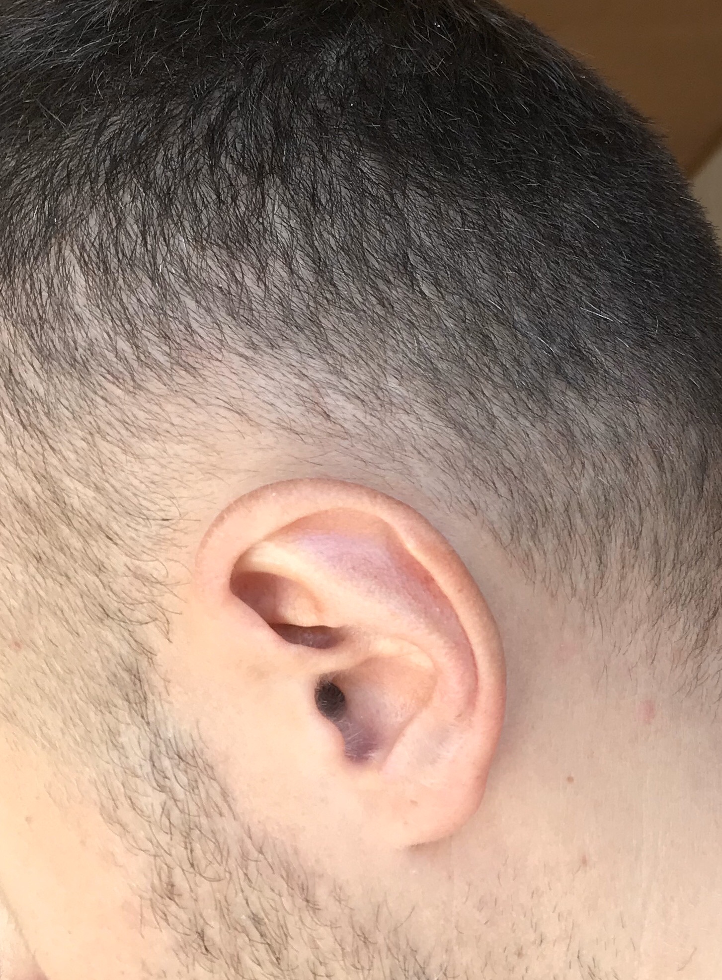 Anbei nochmal ein Bild da sieht man das es über dem Ohr weniger und ganz hellere Haare sind.