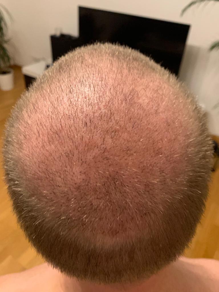 Also man braucht zwar Geduld und sieht paar Wochen aus Wien gerupftes Huhn, aber alle Kollegen und Kolleginnen im Büro sind begeistert und sehen den deutlichen Unterschied schon jetzt. Klar, hatte ja auch eine krasse Landefläche aufm Kopp.