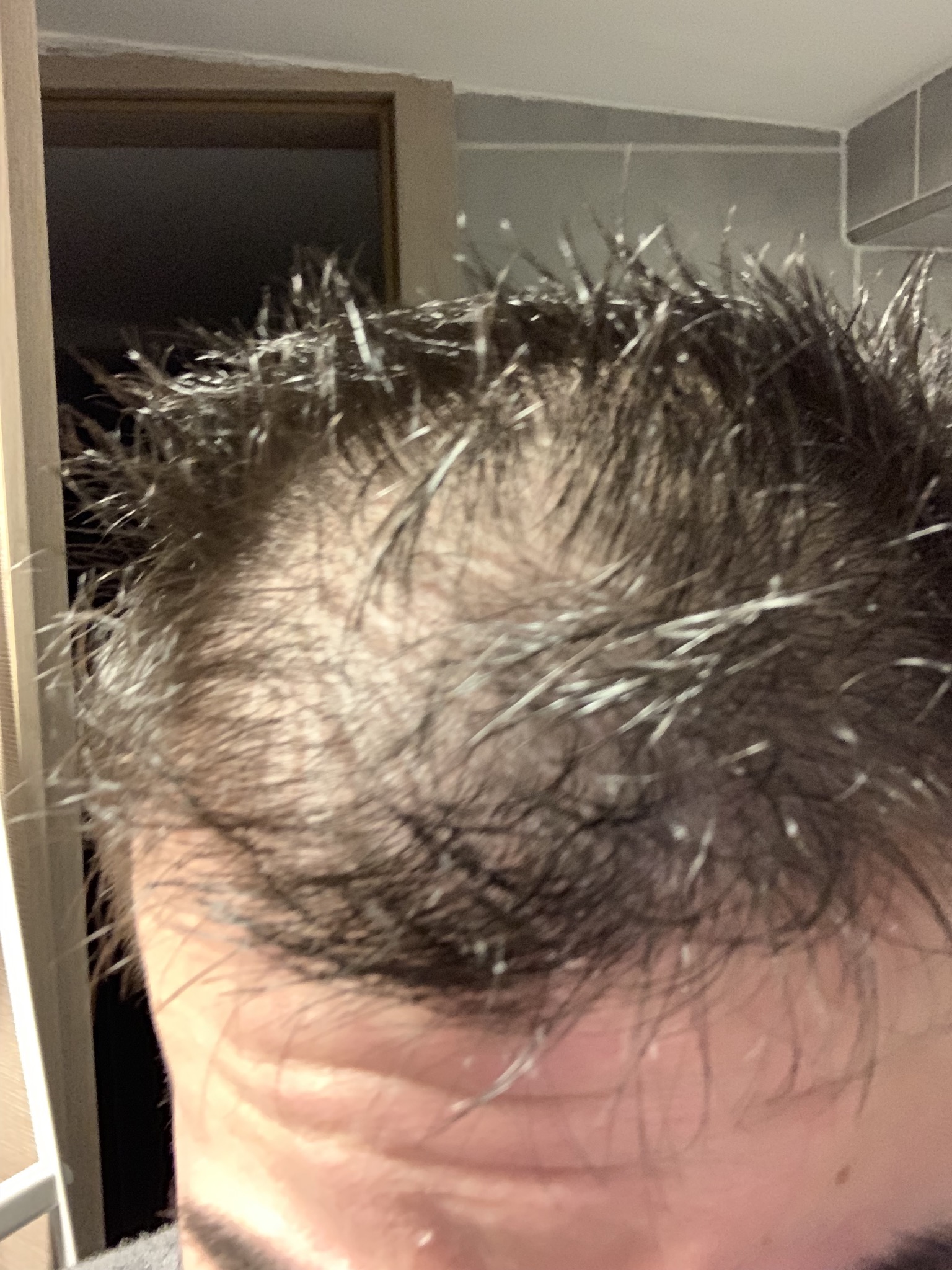 Allerdings hast du ja auf dem Oberkopf aktuell immer noch Haare - die werden weiterhin ausfallen;