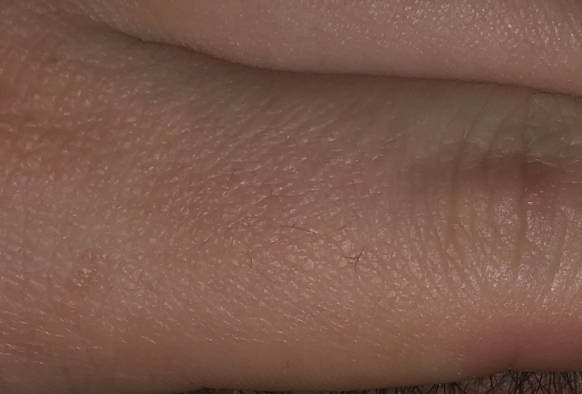 Hand: kaum noch was da und die Poren glänzen und sagen Adios,