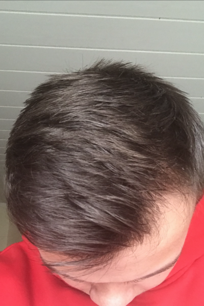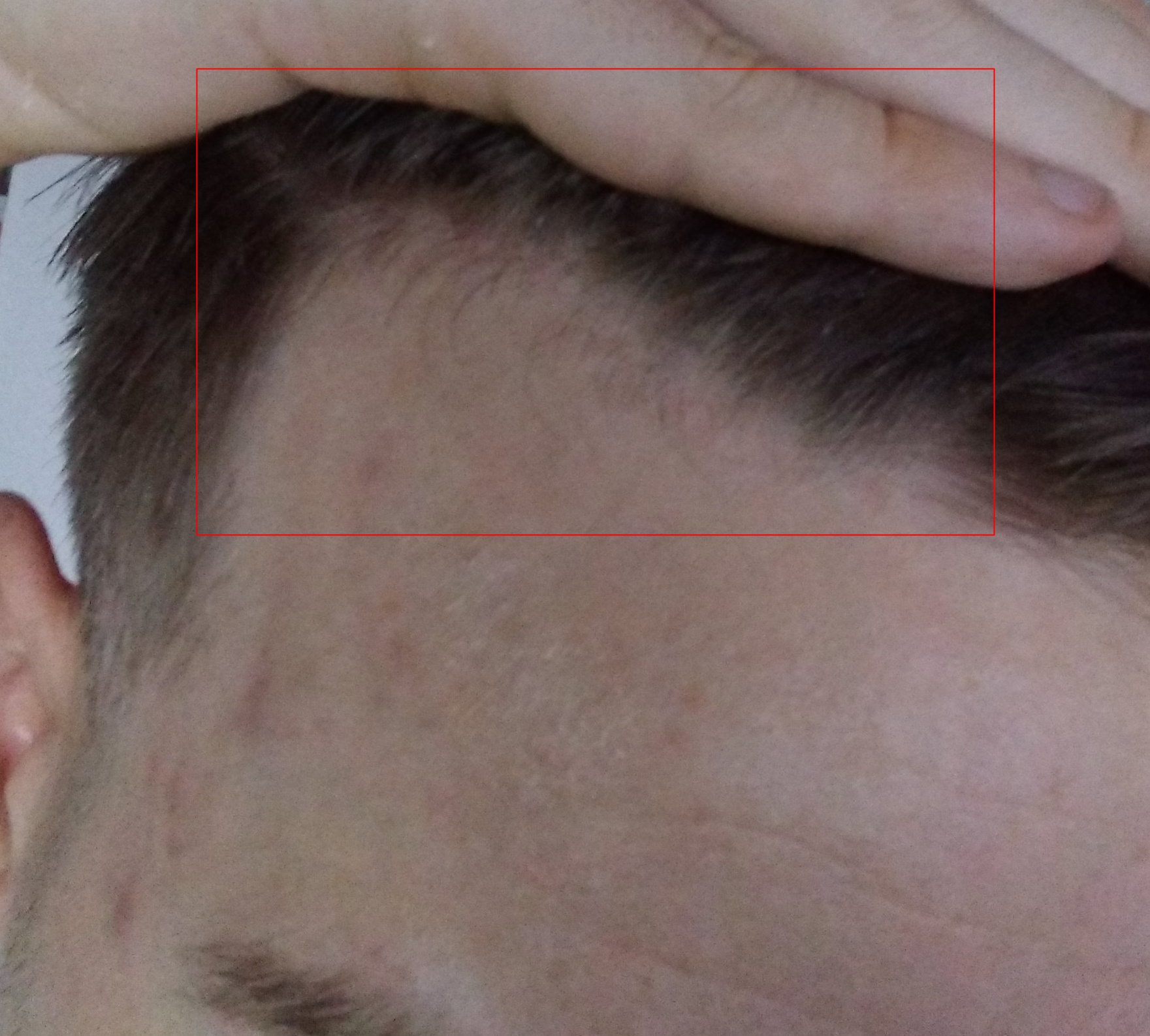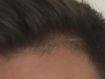 Schau dir mein Foto an, wenn die Haarlinie gesäumt ist von Miniaturisierungen, also kleinen feinen Haaren, die nur eine Länge von 5mm o.ä. erreichen, dann hast du ein eindeutiges Zeichen für erblichen Haarausfall.