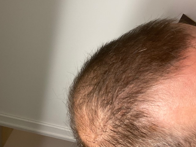Meinen ungefähren Status seht ihr auf dem Bild im Anhang. Tonsur Hinterkopf und Geheimratsecken; allgemein lichterwerdende Haare.